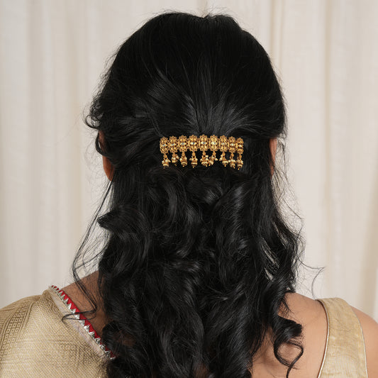 Amazing antique gold kundan buckle hair clip