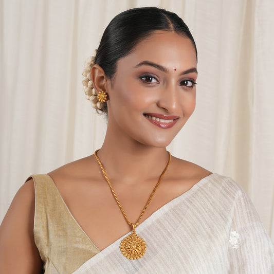 Amazing antique gold floral plain pendant set