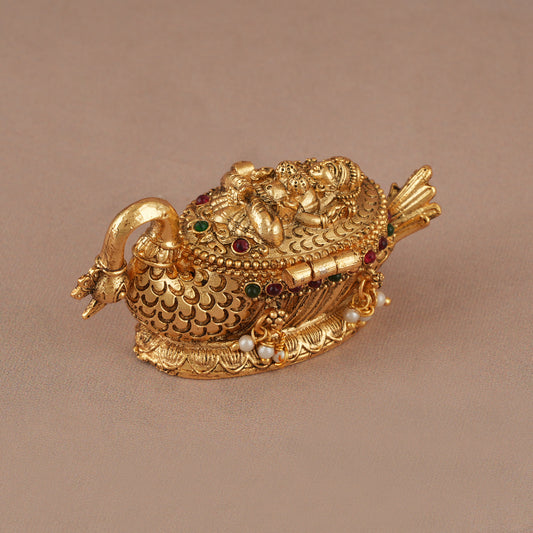 Stunning maa lakshmi stone peacock inspired sindoor box I Temple Jewellery