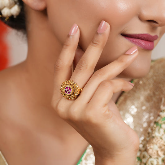 Stunning elegant antique gold ruby maa lakshmi necklace set