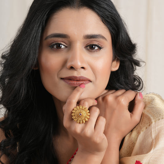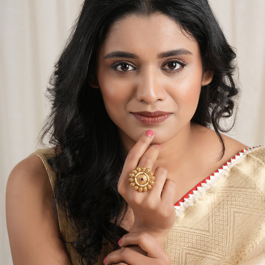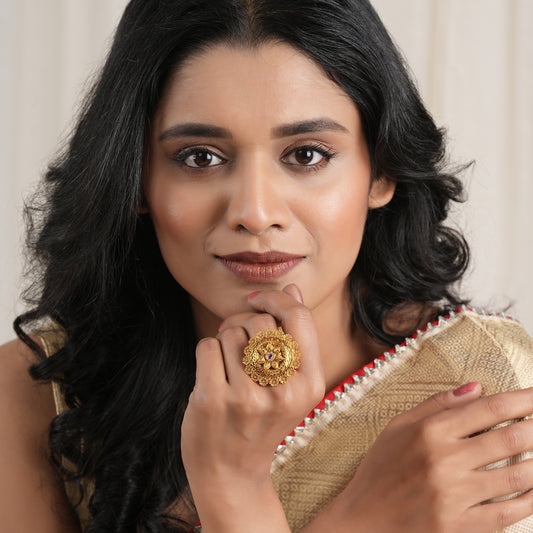 Beautiful antique gold floral ruby stone adjustable finger ring
