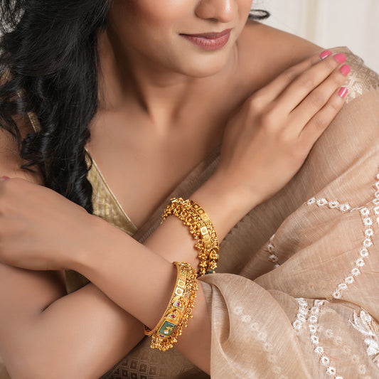 Beautiful antique gold stone ghungroo bangle set ( set of 4 )