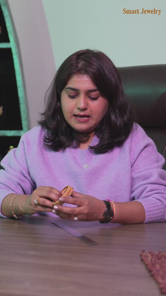 Beautiful floral antique gold stone openable bangle set