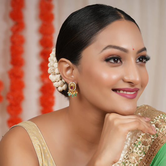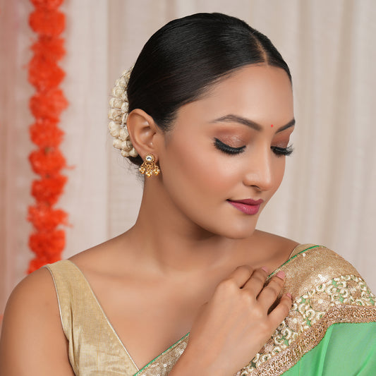 Cute kundan stone antique gold floral earring