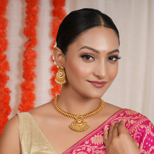 Stunning antique gold ruby traditional maa lakshmi necklace set I Temple Jewellery