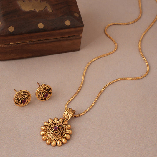 Stunning plain antique gold lord shiva pendant set I Temple Jewellery