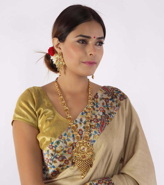 Long antique gold shiv parvati necklace set I Temple Jewellery