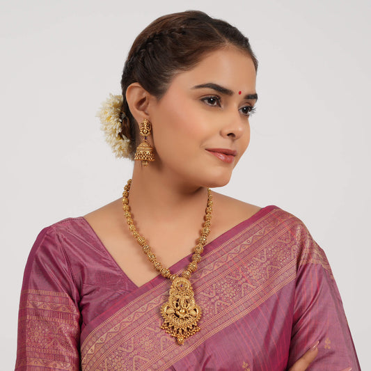 Amazing gold finish Lord Ganesh long necklace set I Temple Jewellery