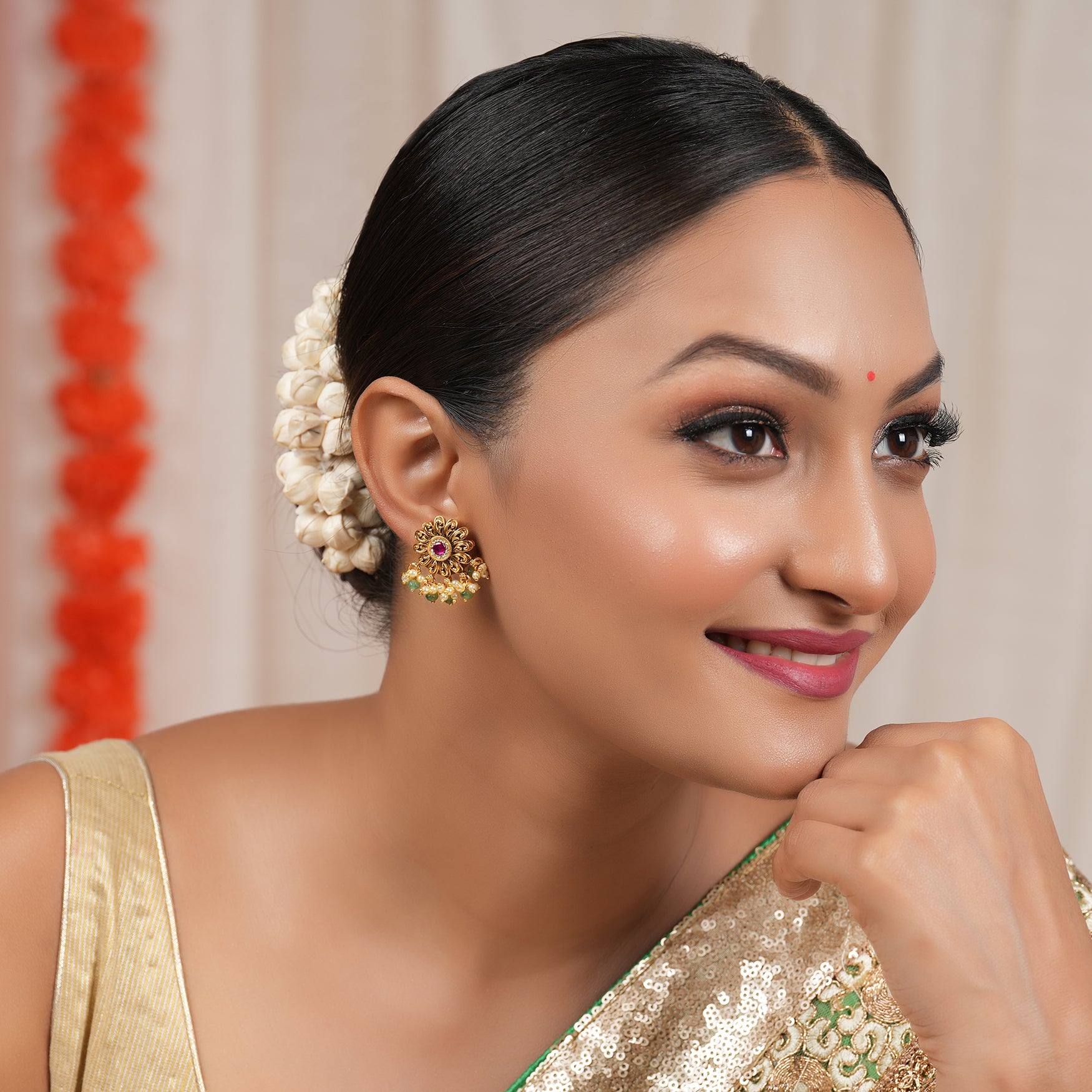 NOTE: These Amazing antique gold floral kundan stone drop earring have been crafted by hand and may have slight irregularities or imperfections in color or embellishment. These irregularities are the result of human involvement in the process and add to the finished product's charm while ensuring you have a one-of-a-kind piece.