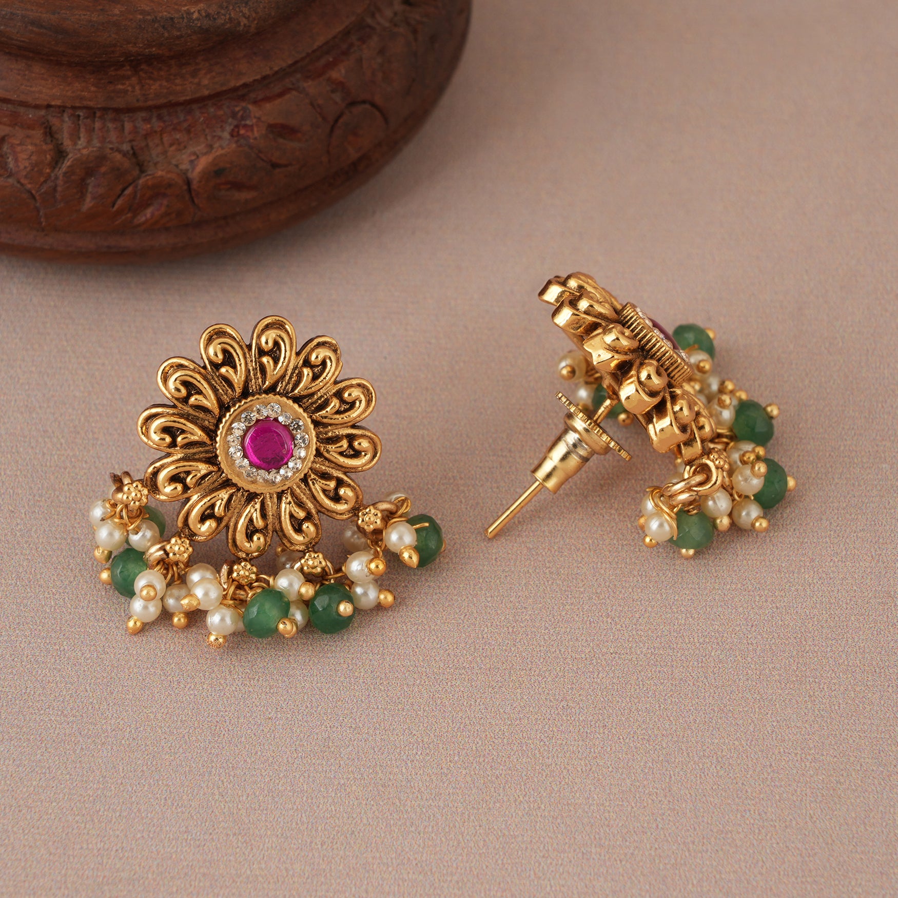 Amazing antique gold floral kundan stone drop earring is show-stopping and come in contemporary Indian design with gold plating and handwork. Amazing antique gold floral kundan stone drop earring and get free shipping even on Cash on Delivery.