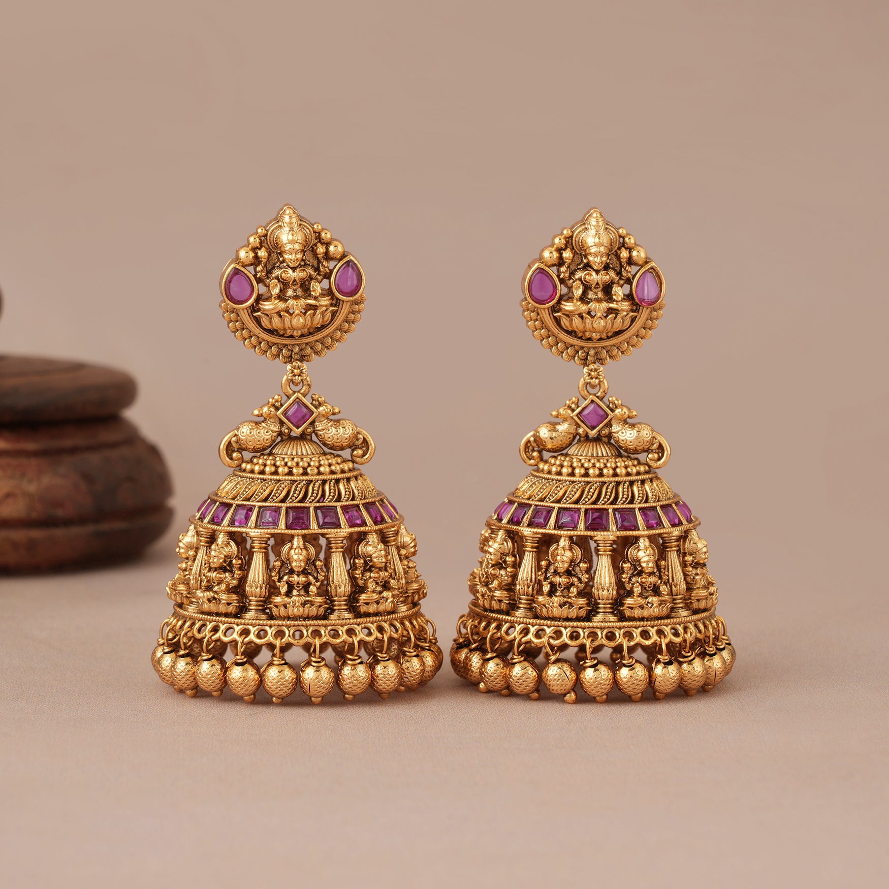 Amazing antique gold ma lakhsmi ruby jhumka earring