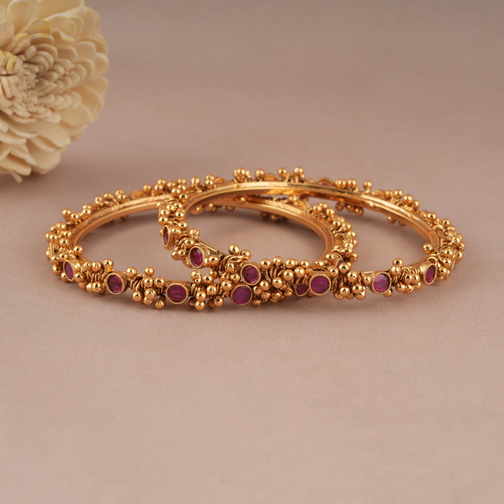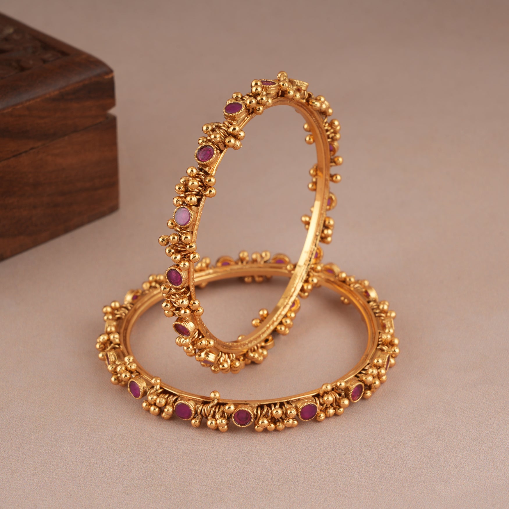 Amazing antique gold ruby bangle set online and get free shipping even on Cash on Delivery