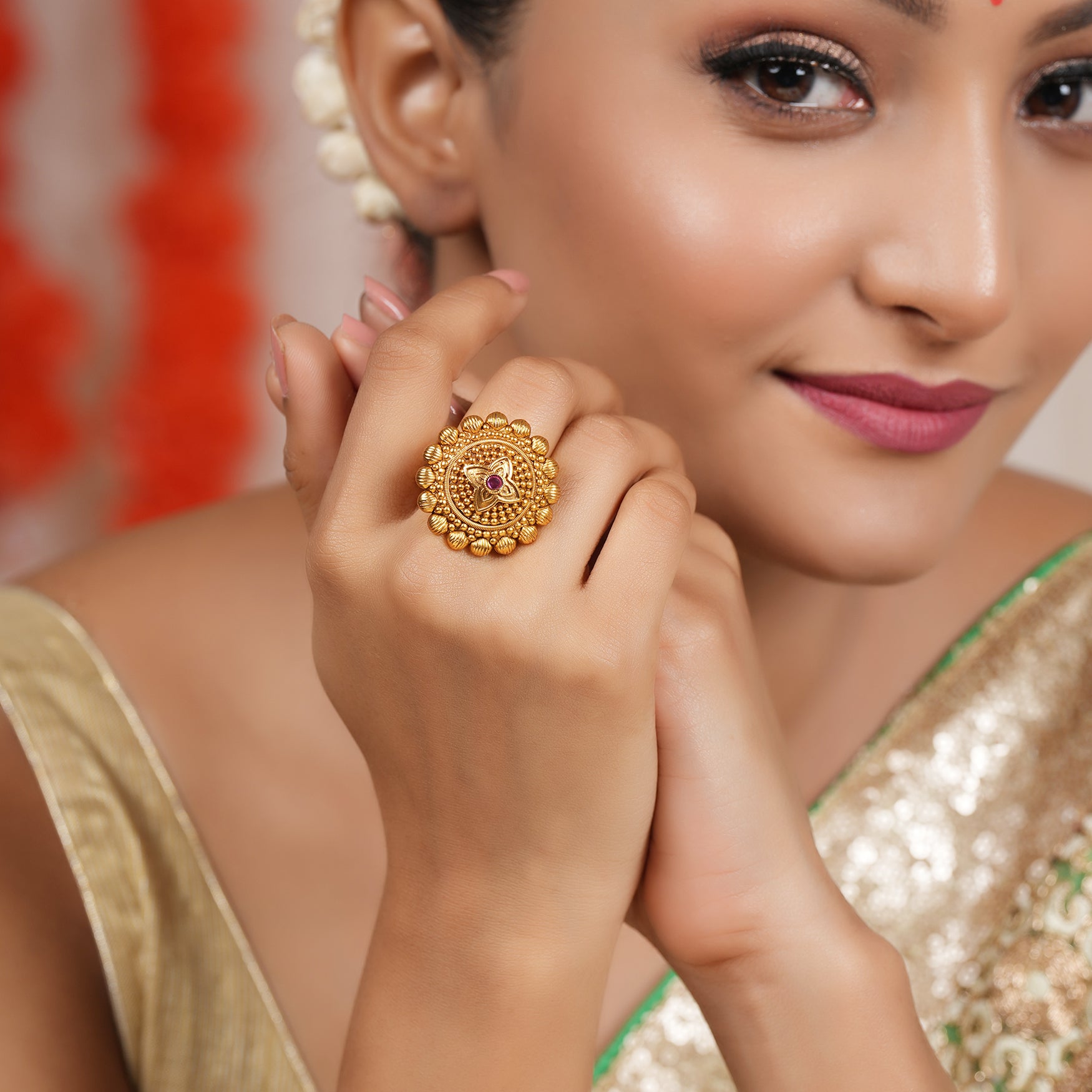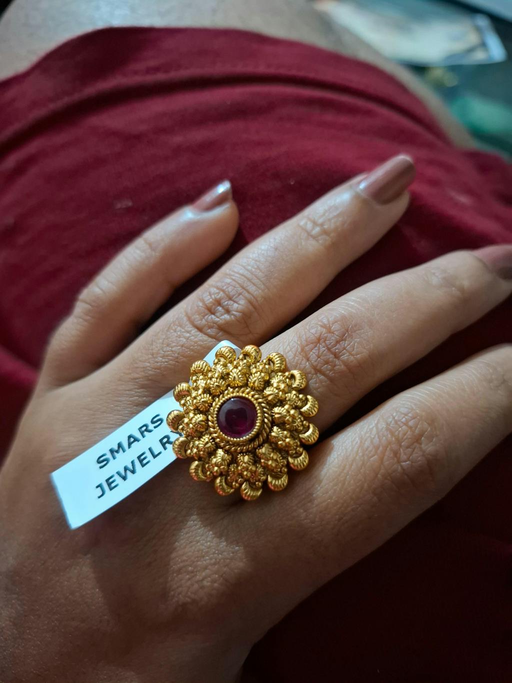 NOTE: This Amazing antique gold ruby stone adjustable finger ring   has been crafted by hand and Traditional beautiful antique gold finger ring have slight irregularities or imperfections in color or embellishment. These irregularities are the result of human involvement in the process and add to the finished product's charm while ensuring you have a one-of-a-kind piece.
