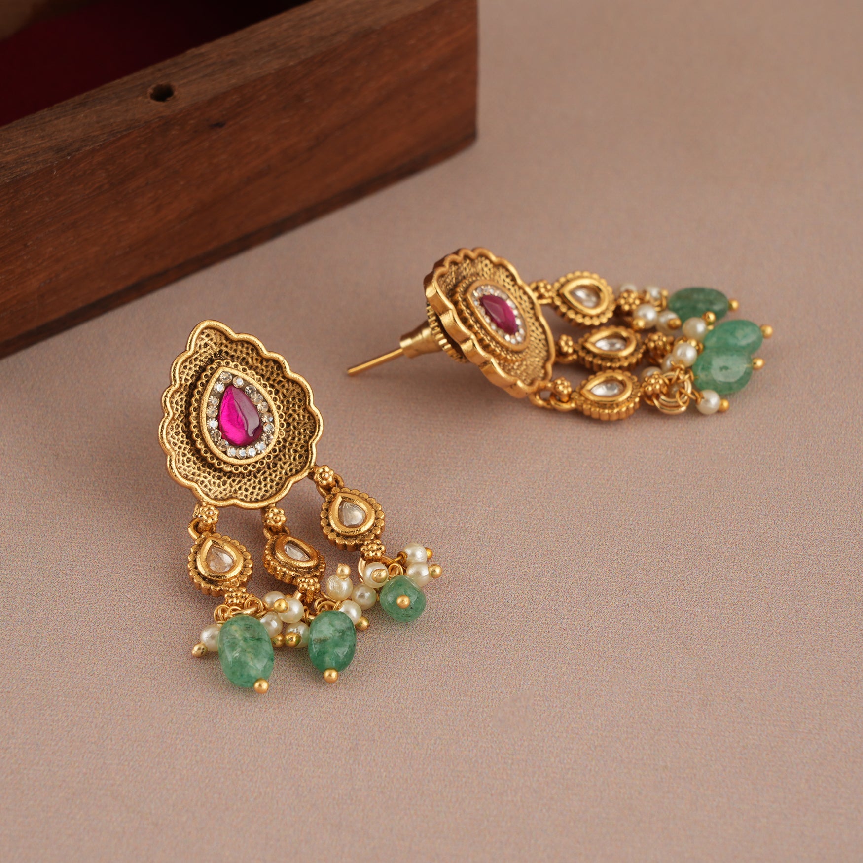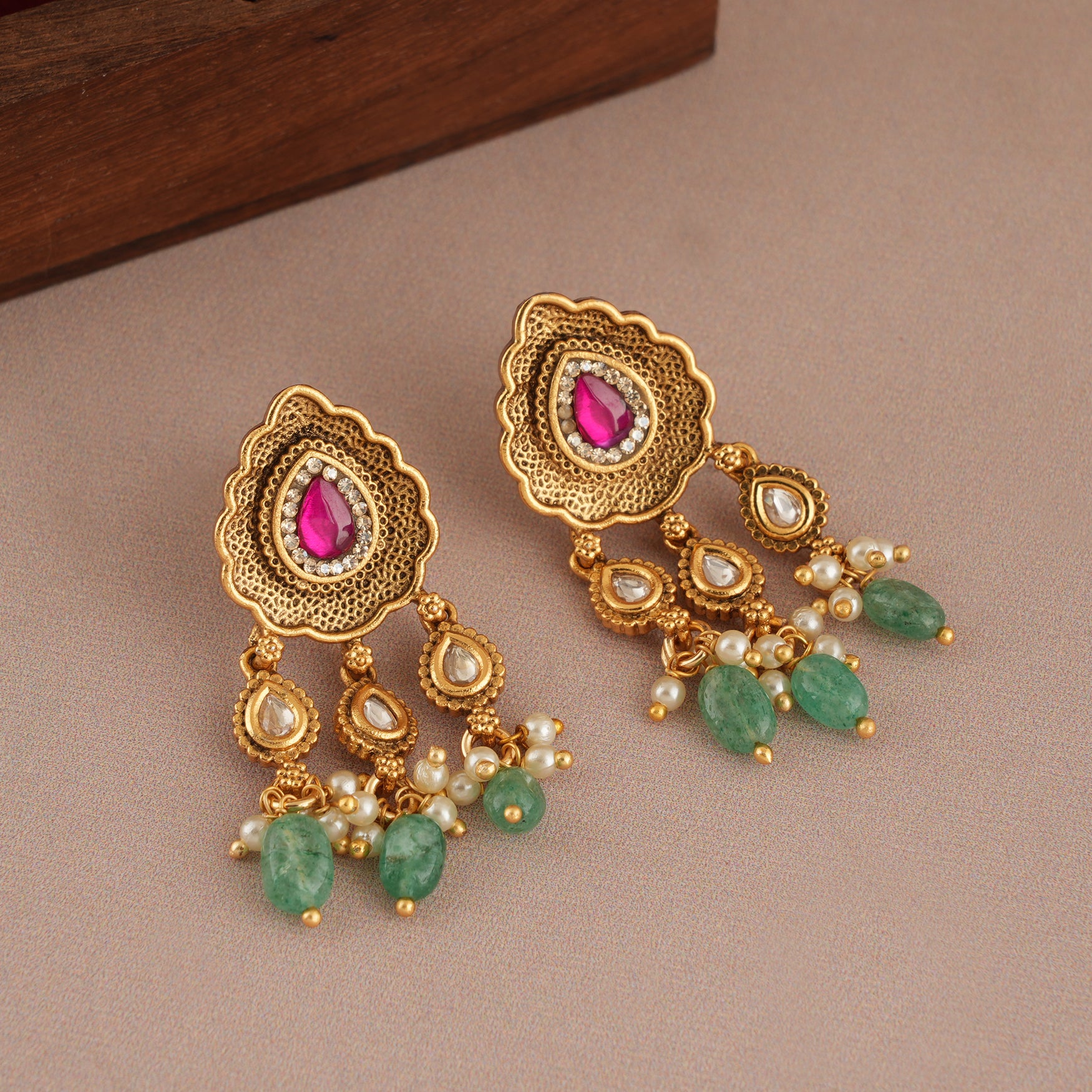 NOTE: These Amazing antique gold stone earring have been crafted by hand and may have slight irregularities or imperfections in color or embellishment. These irregularities are the result of human involvement in the process and add to the finished product's charm while ensuring you have a one-of-a-kind piece.