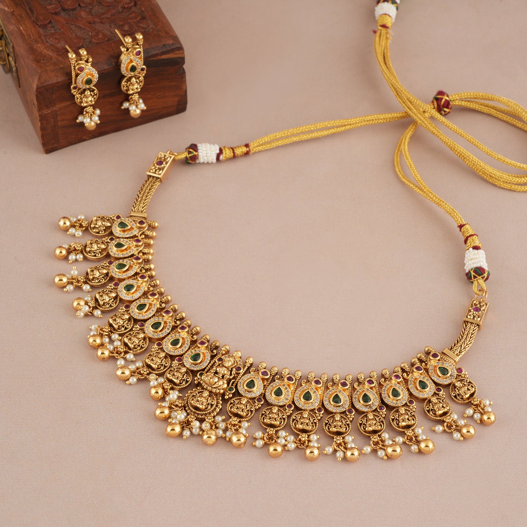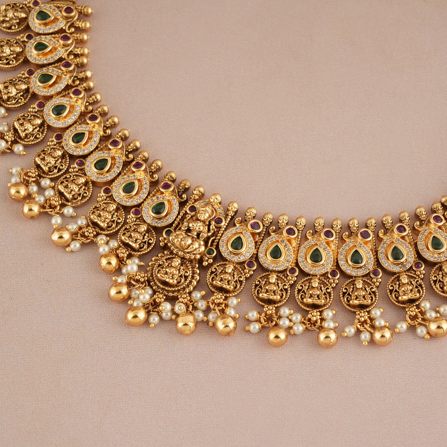 Amazing Antique gold stone ma lakshmi necklace set I Temple Jewellery