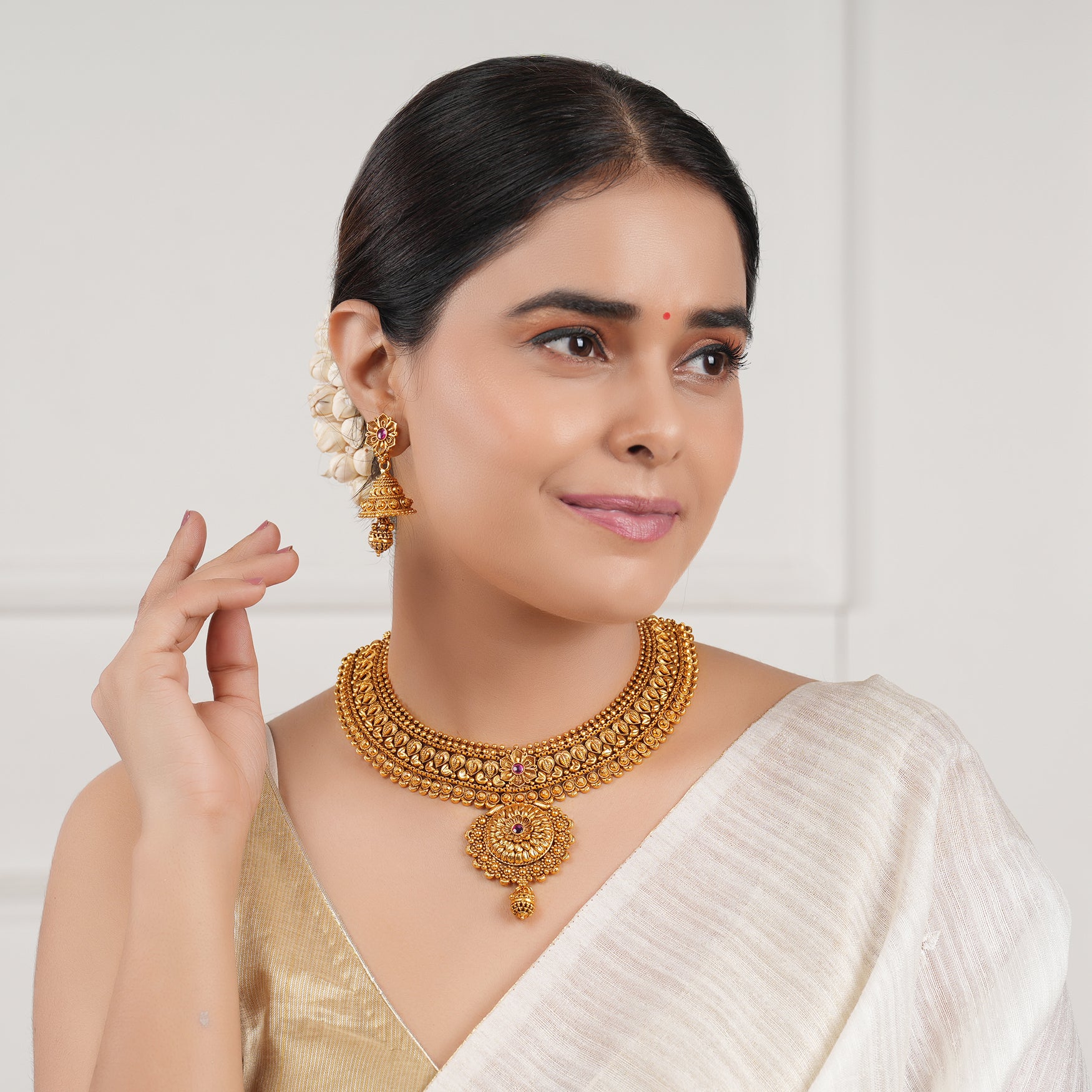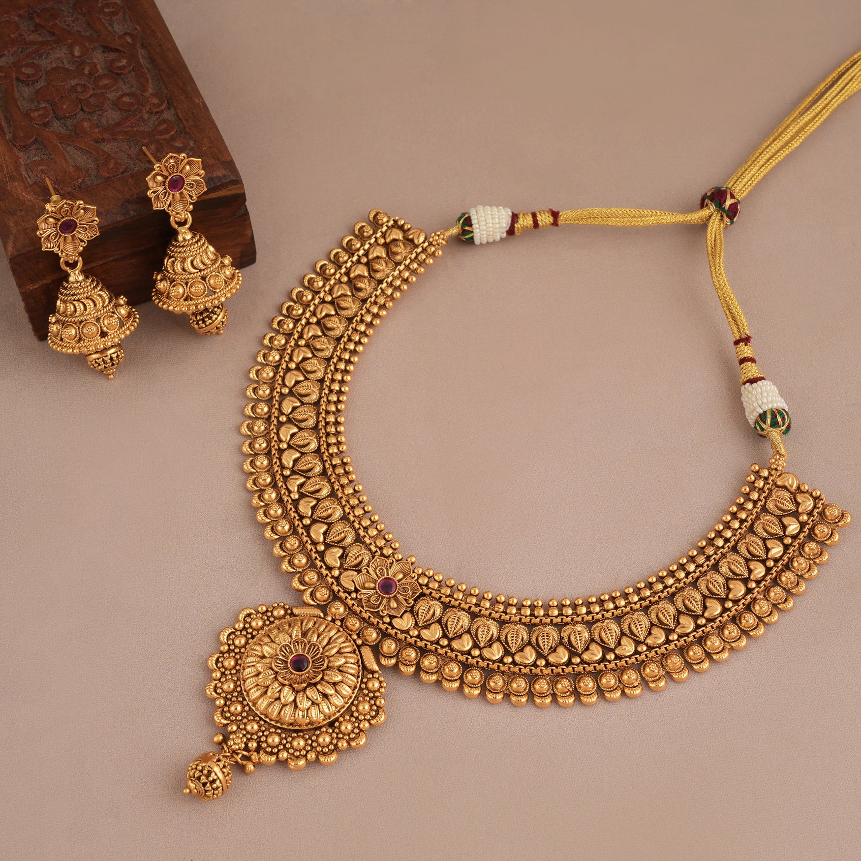 Amazing plain antique plated floral necklace set  for women  are show-stopping and come in traditional Indian design with gold plating and handwork.