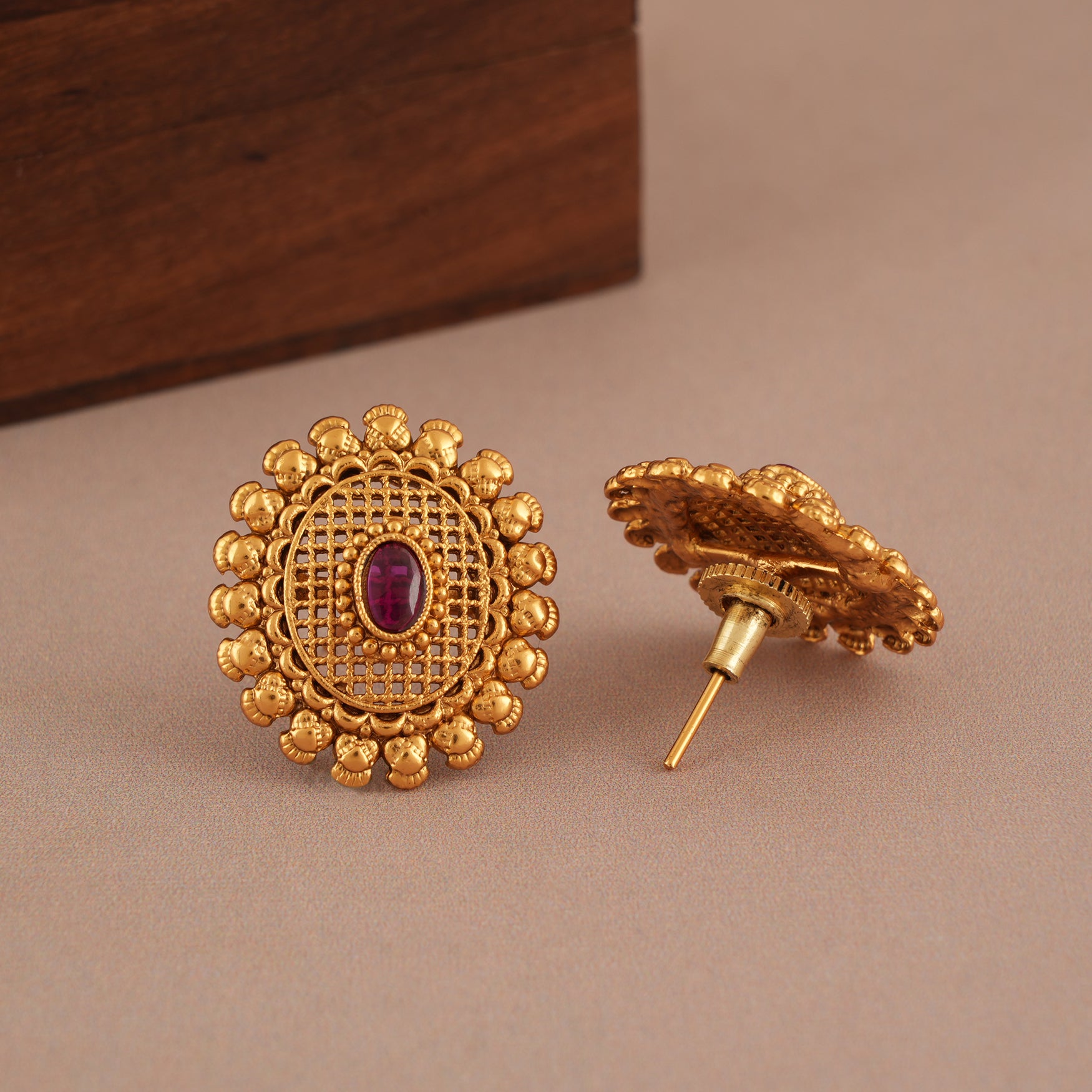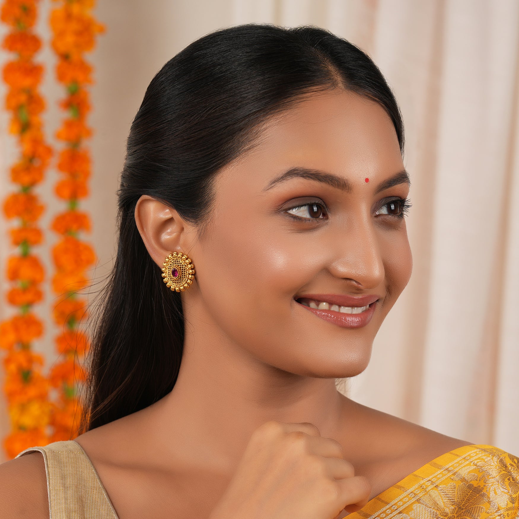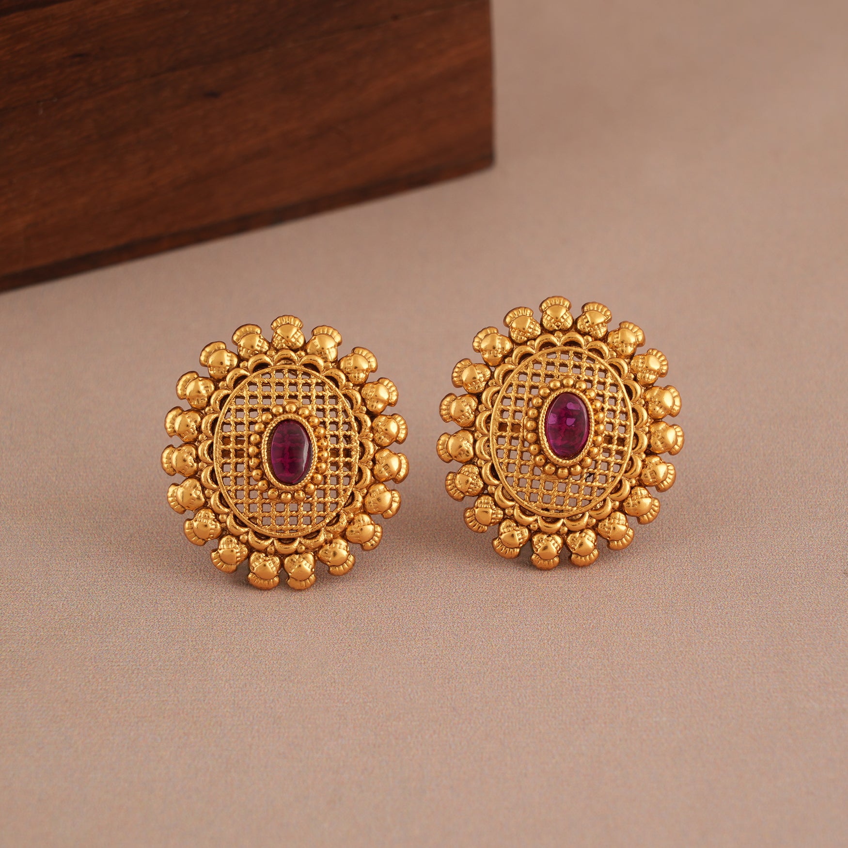 Antique gold oval ruby stone stud earring  show-stopping and come in traditional  Indian   design with gold plating and handwork.