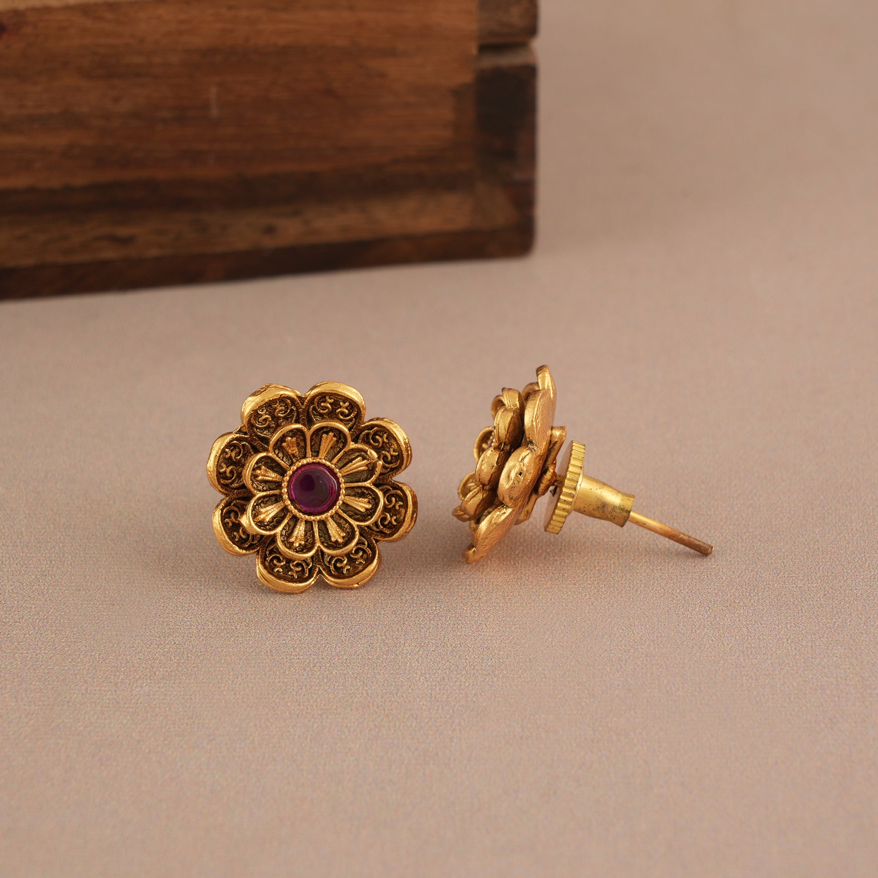 Antique gold plated floral pendant set is a show-stopping, traditional Indian necklace set with gold plating and handwork. Buy Antique gold plated floral pendant set with chain and get free shipping even on Cash on Delivery.