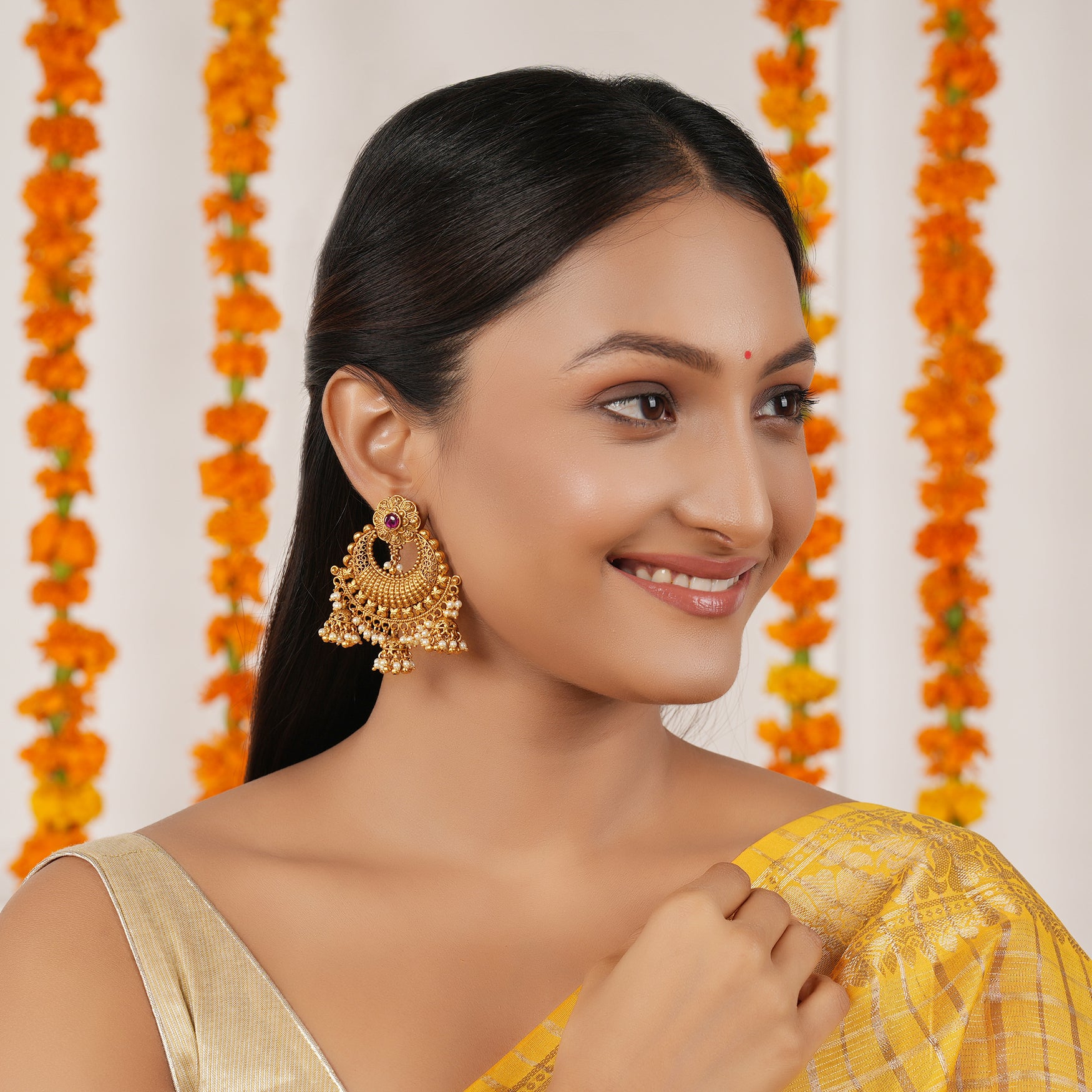 Dive into our collection where each jewel shines with the lasting beauty of gold, crafted from 100% pure brass and a high-quality gold finish that stands the test of time. Embrace designs that mix traditional charm with a modern look.
