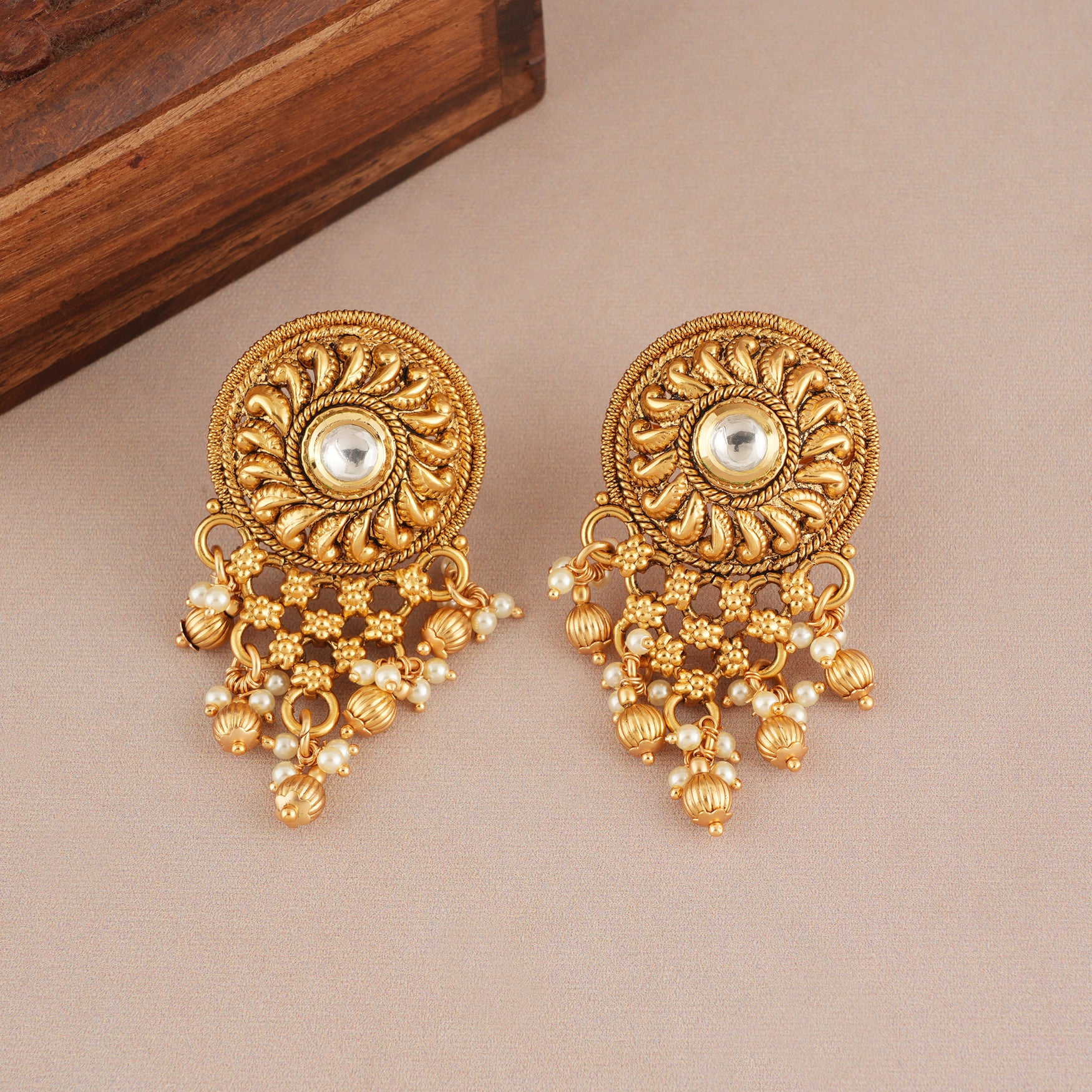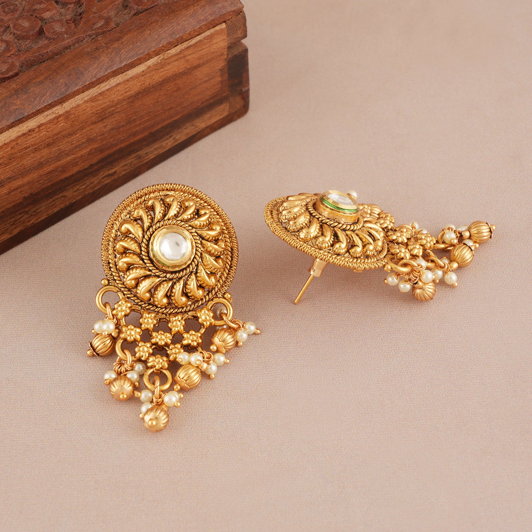 Dive into our collection where each jewel shines with the lasting beauty of gold, crafted from 100% pure brass and a high-quality gold finish that stands the test of time. Embrace designs that mix traditional charm with a modern look.
