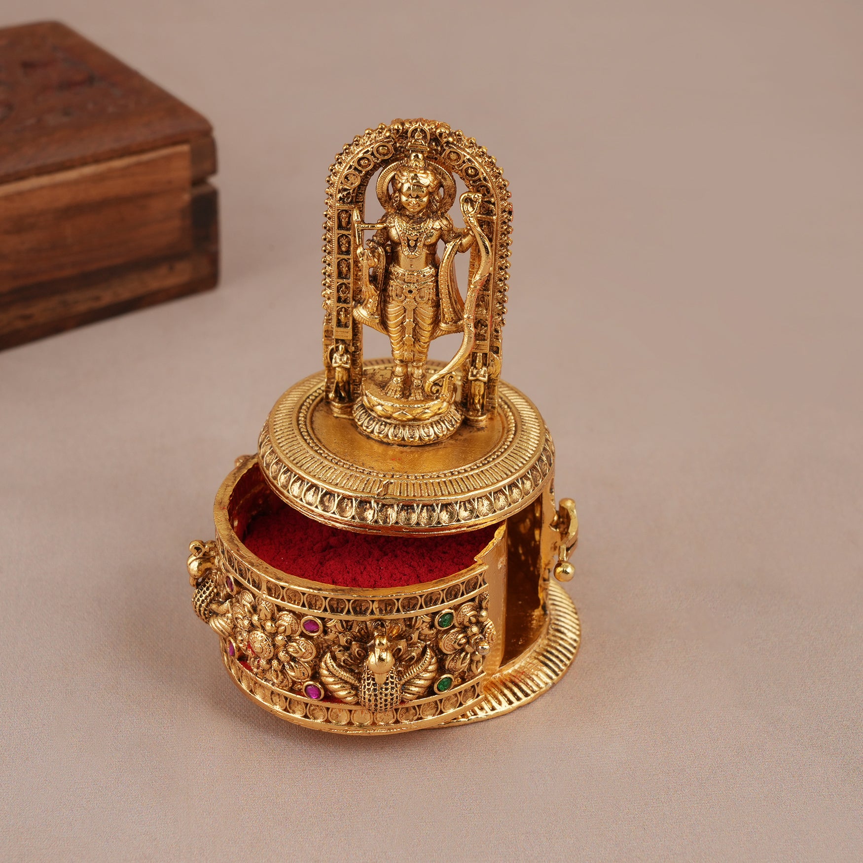 Auspicious antique gold Lord Ram roli box | Temple jewellery made of brass alloy with gold plating.