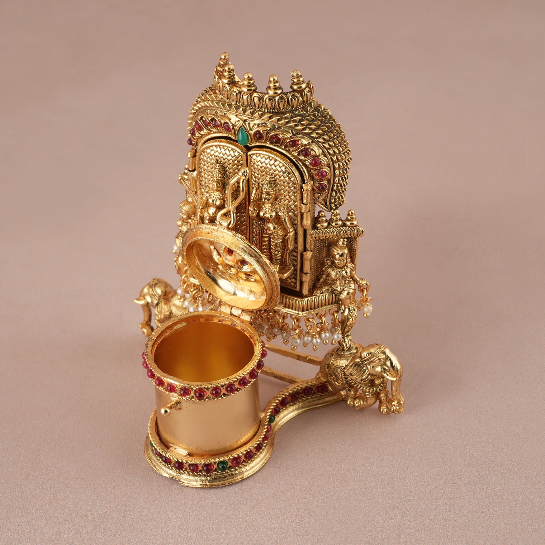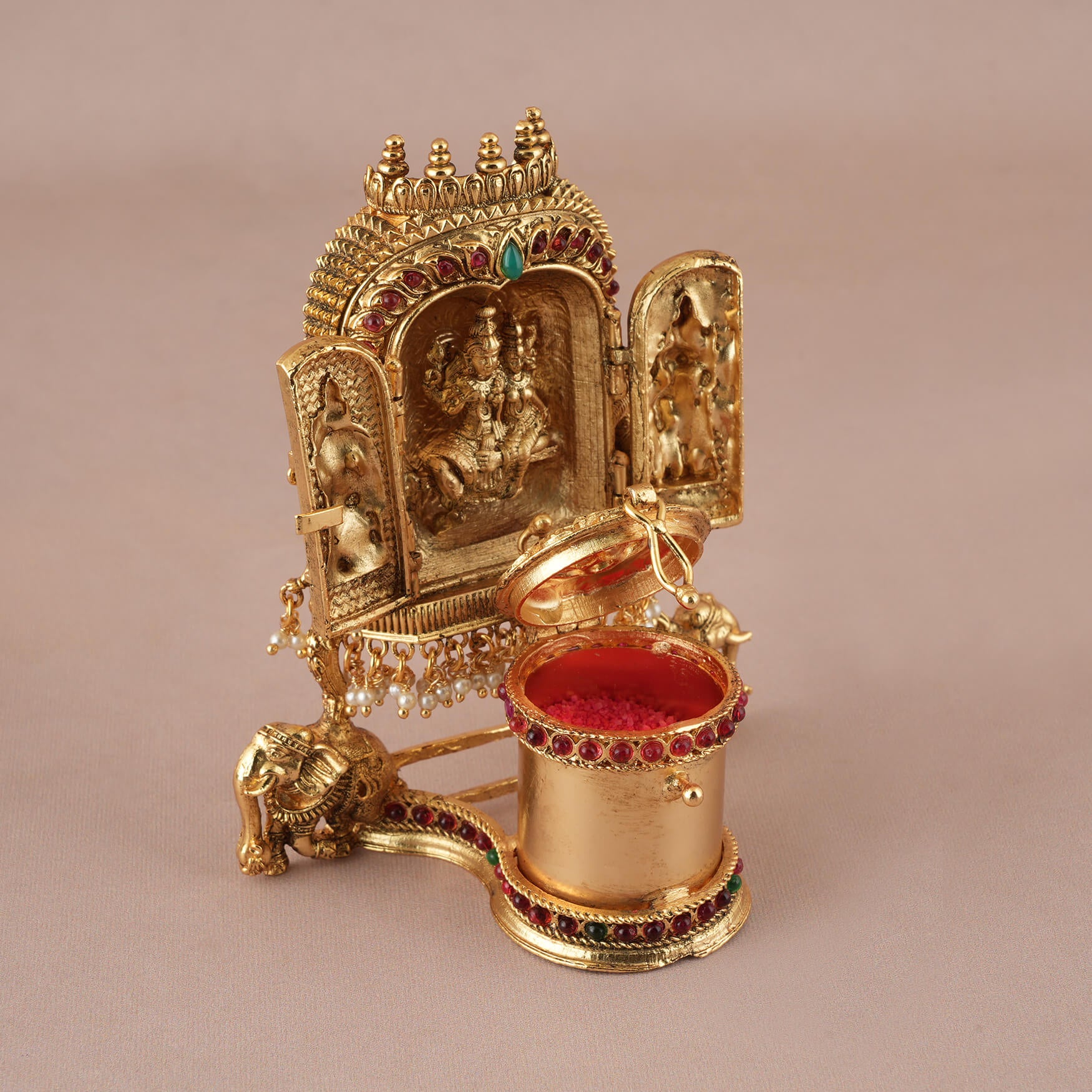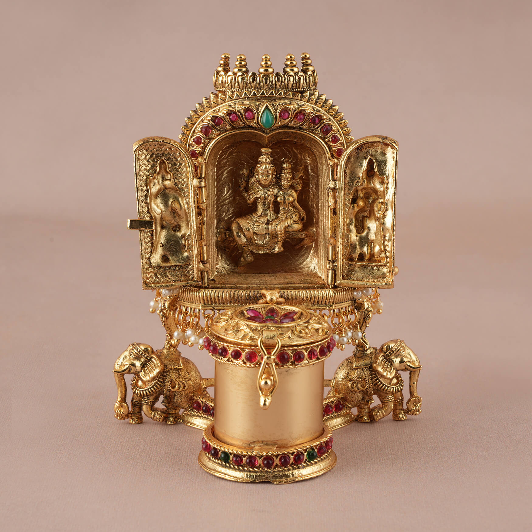 Auspicious Gold plated Shiv Parvati Sindoor Box