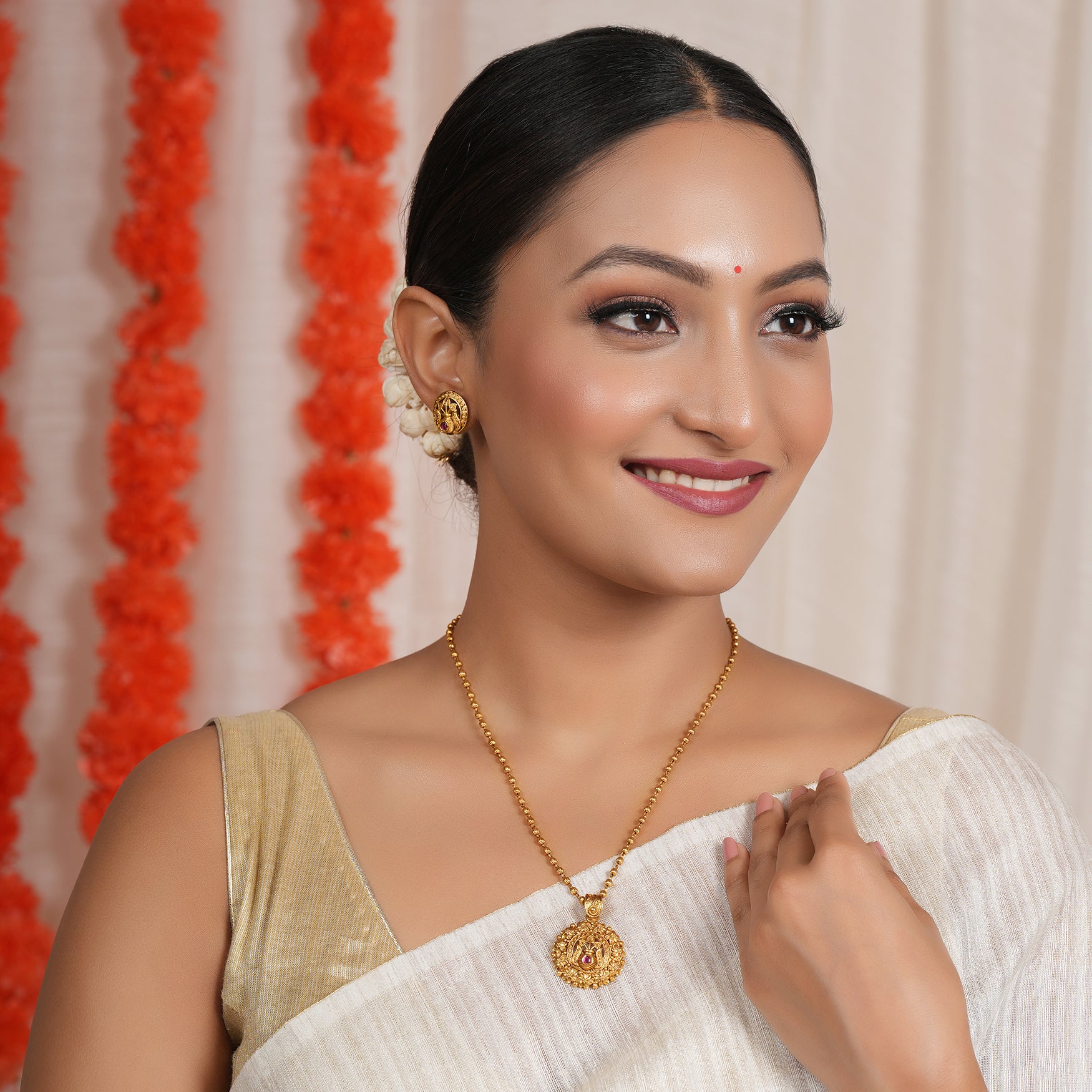 NOTE: This Beautiful antique gold carved pendant set has been crafted by hand and may have slight irregularities or imperfections in color or embellishment. These irregularities are the result of human involvement in the process and add to the finished product's charm while ensuring you have a one-of-a-kind piece.