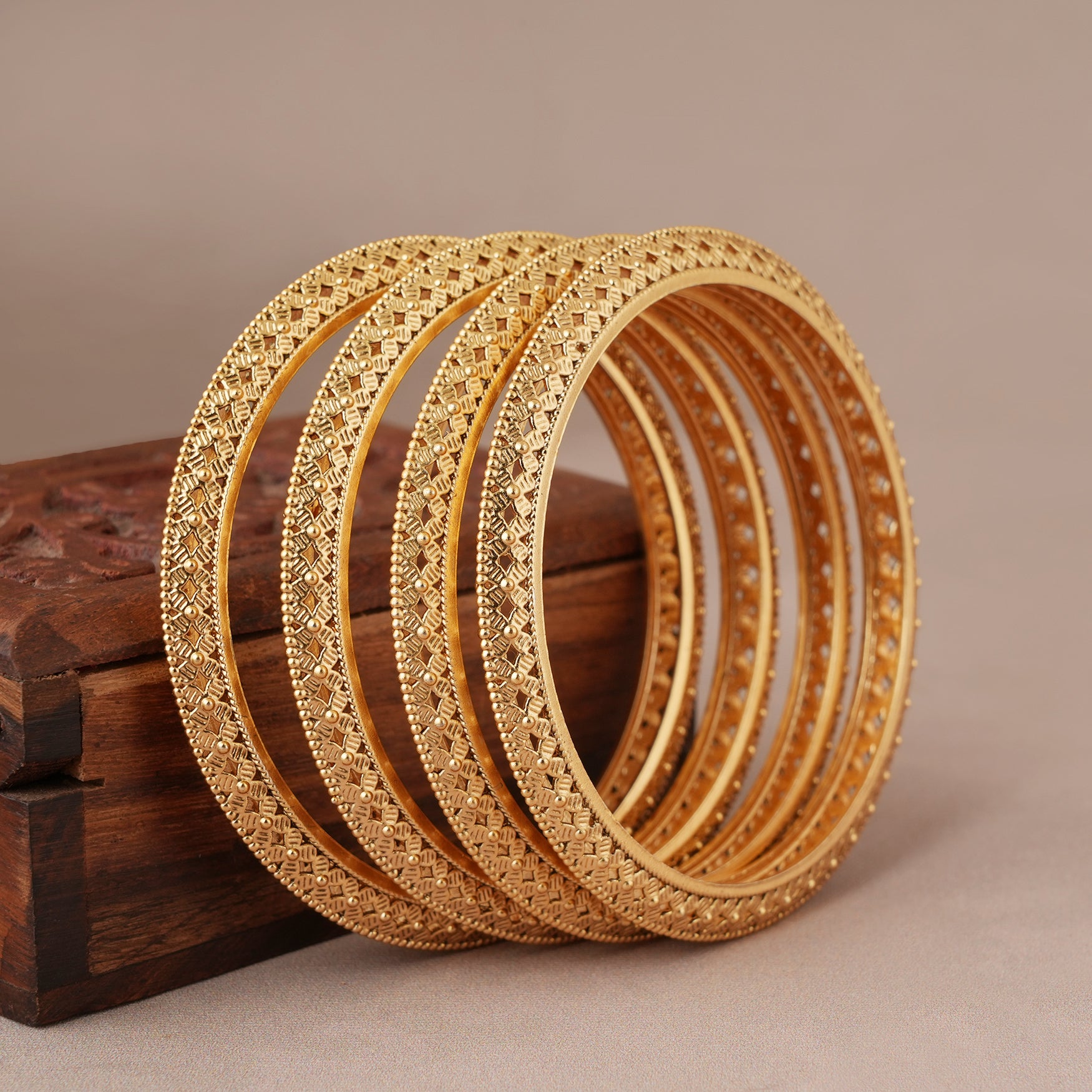 Beautiful antique gold elegant bangle set ( set of 4) online and get free shipping even on Cash on Delivery