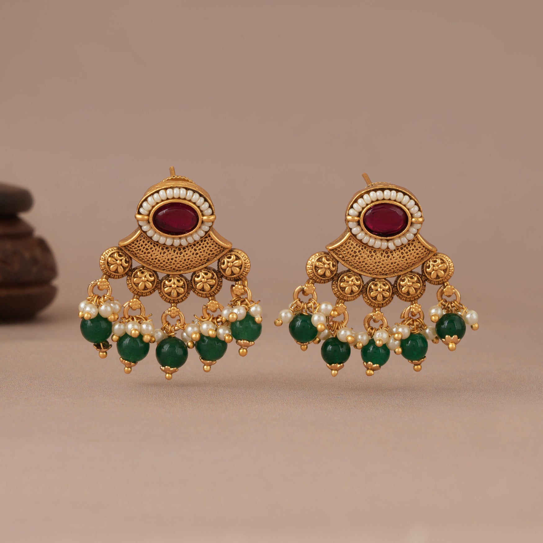 Buy this  Beautiful antique gold green stone drop earring      and get free shipping even on cash  on delivery.