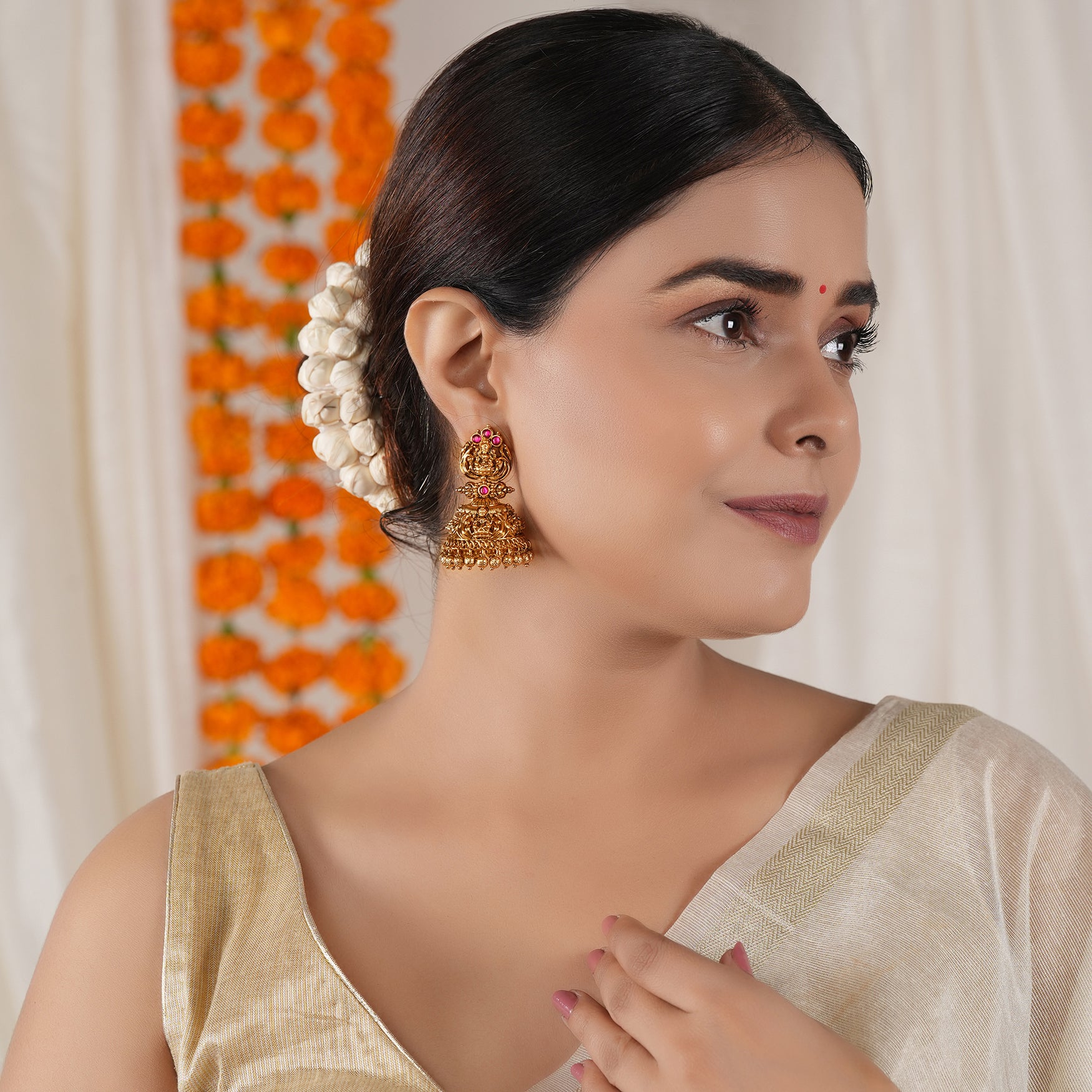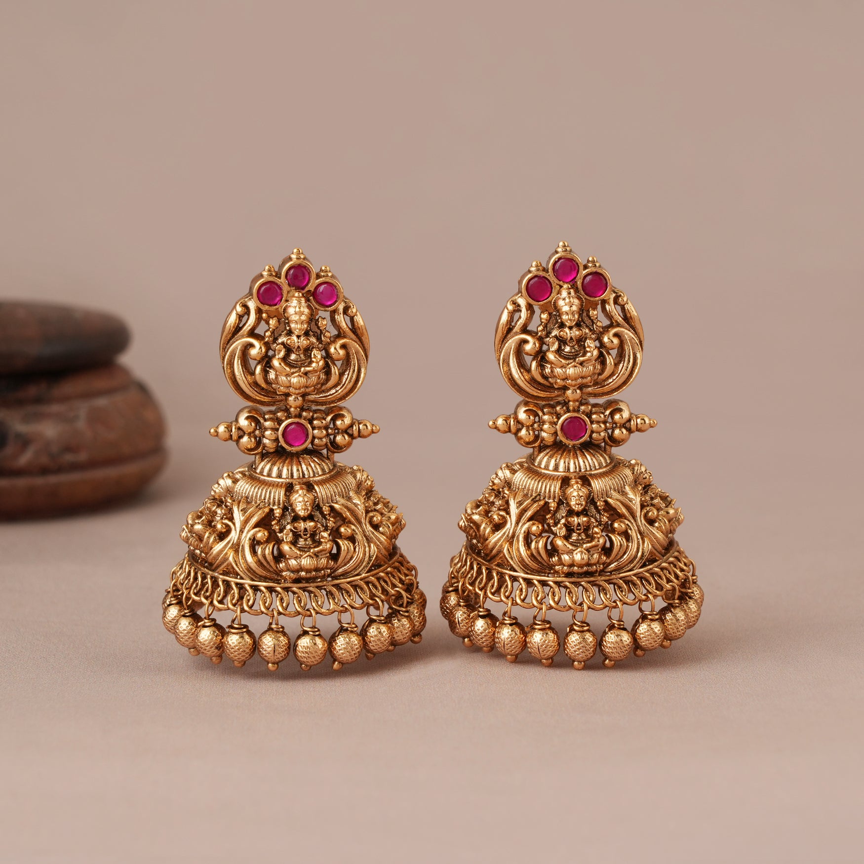 Beautiful antique gold ma laskhmi jhumka earring I Temple Jewelry