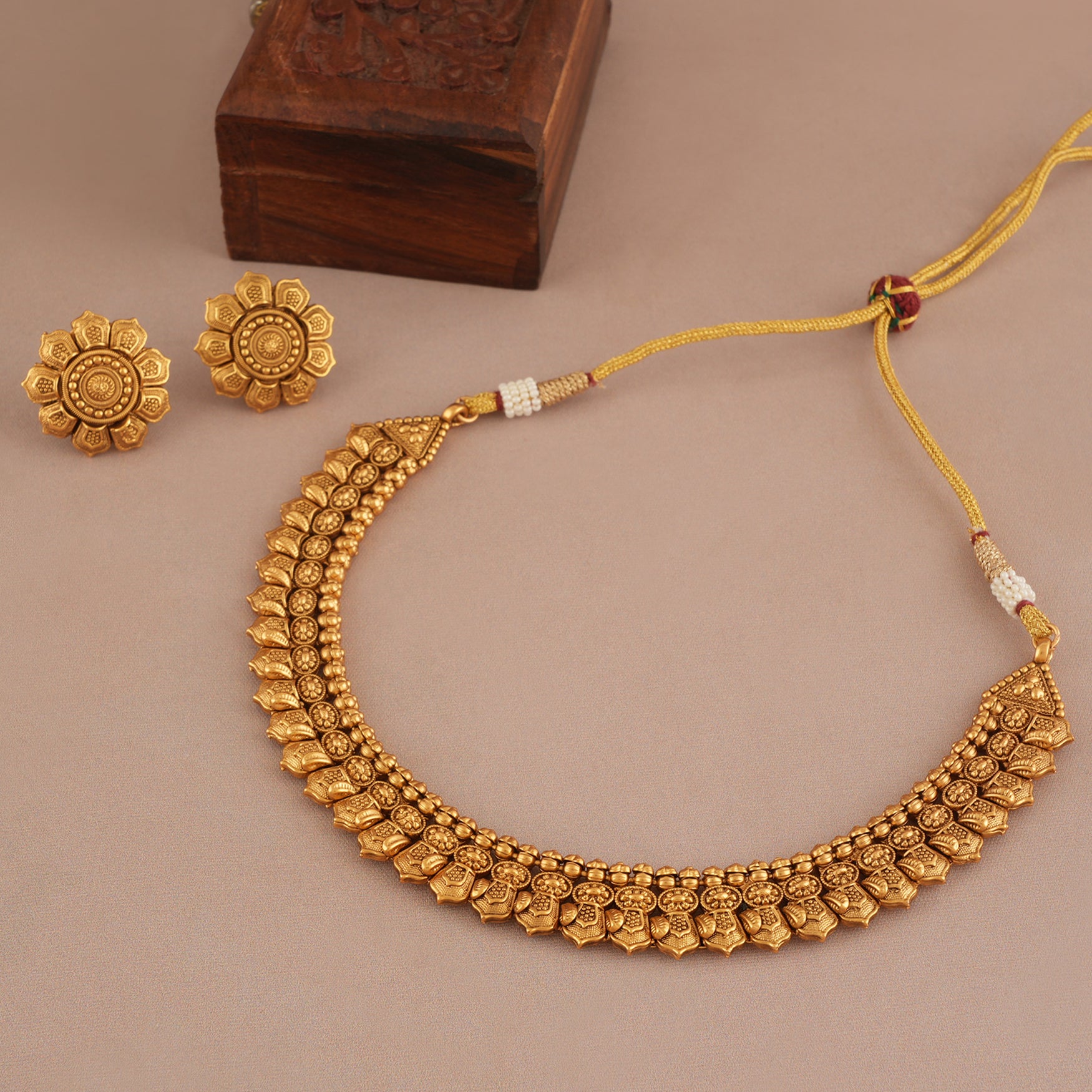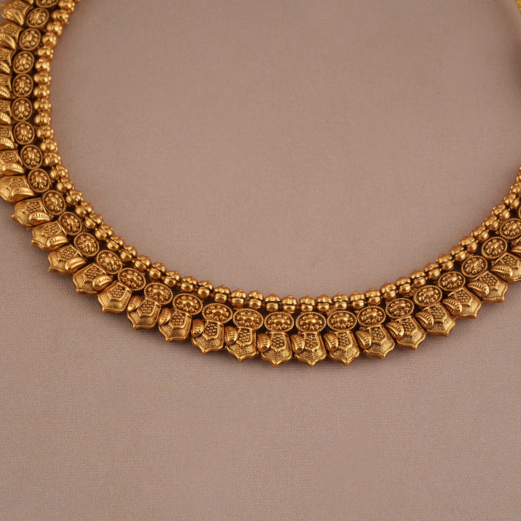 NOTE: These Beautiful antique gold plain necklace set have been crafted by hand and may have slight irregularities or imperfections in color or embellishment. These irregularities are the result of human involvement in the process and add to the finished product's charm while ensuring you have a one-of-a-kind piece.