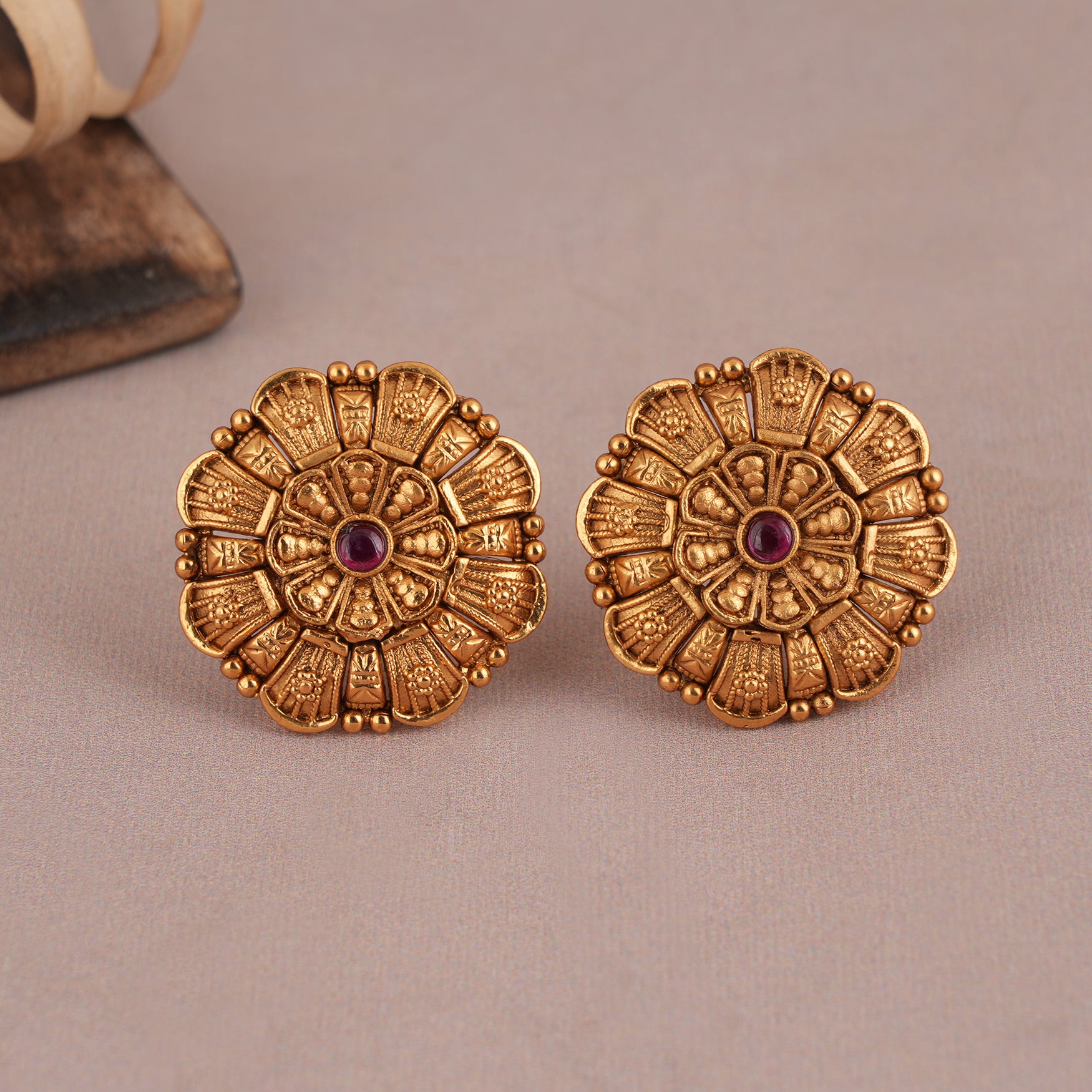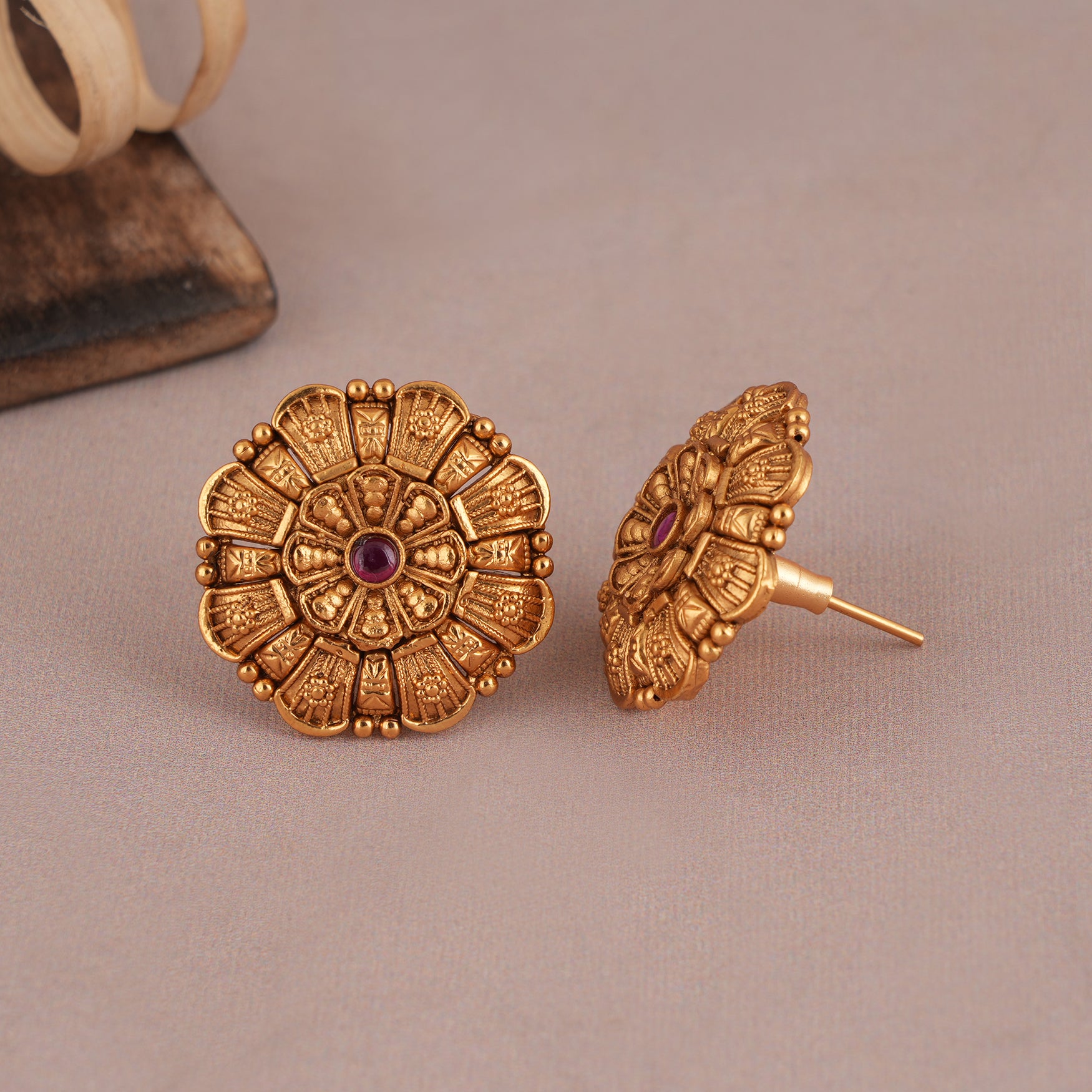 Beautiful antique gold plated stone stud are show-stopping and come in traditional Indian design with gold plating and handwork.