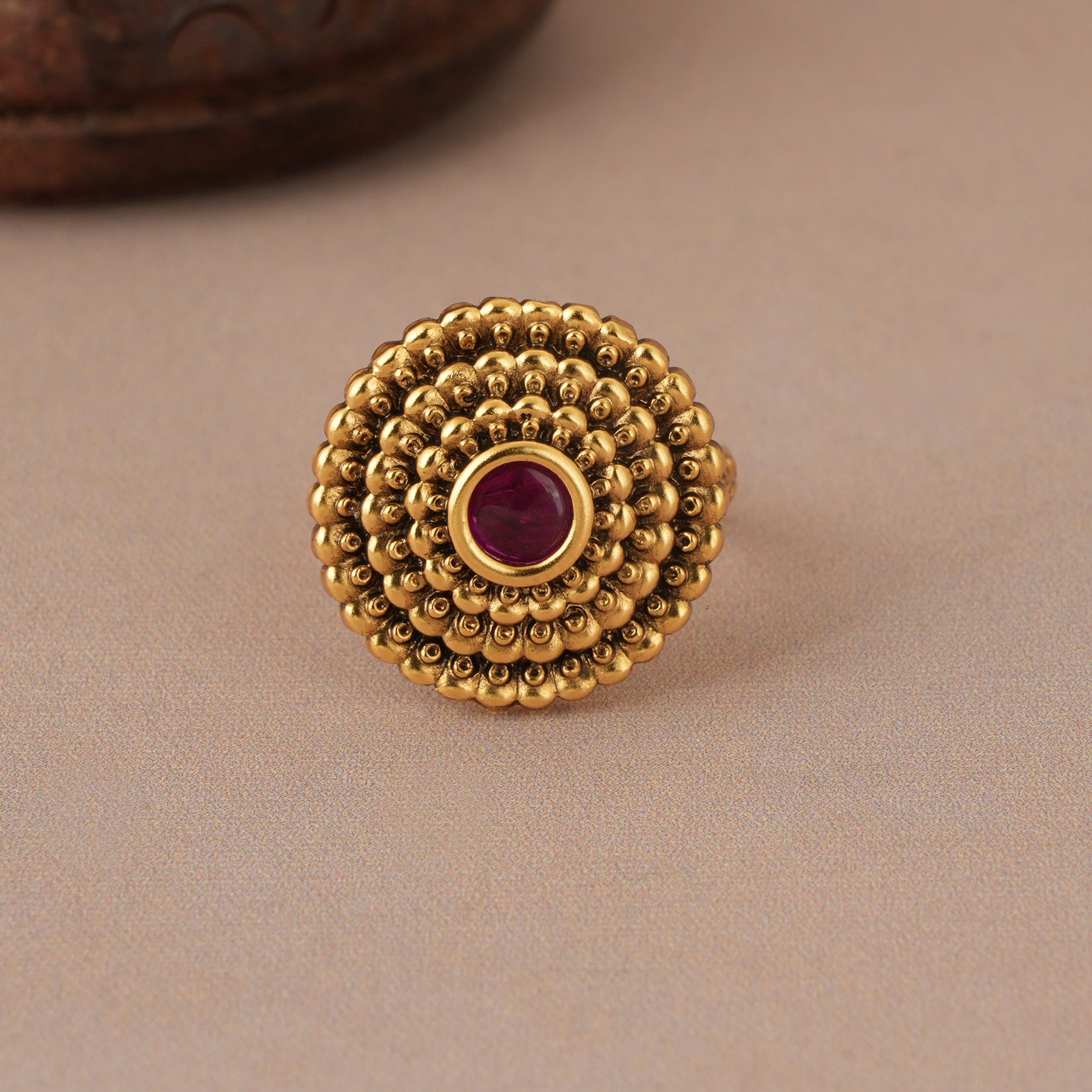 NOTE: This  Beautiful antique gold ruby finger ring    has been crafted by hand and Traditional beautiful antique gold finger ring have slight irregularities or imperfections in color or embellishment. These irregularities are the result of human involvement in the process and add to the finished product's charm while ensuring you have a one-of-a-kind piece.