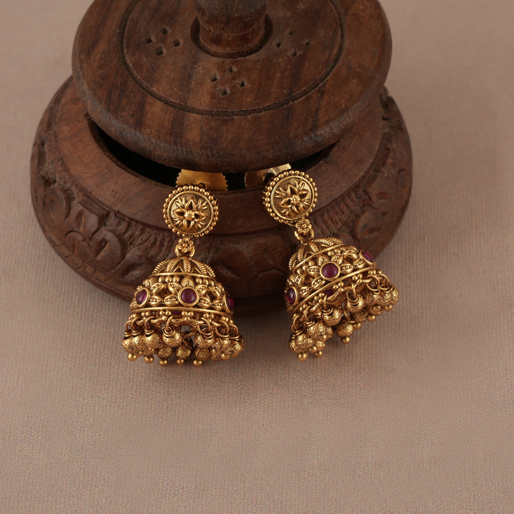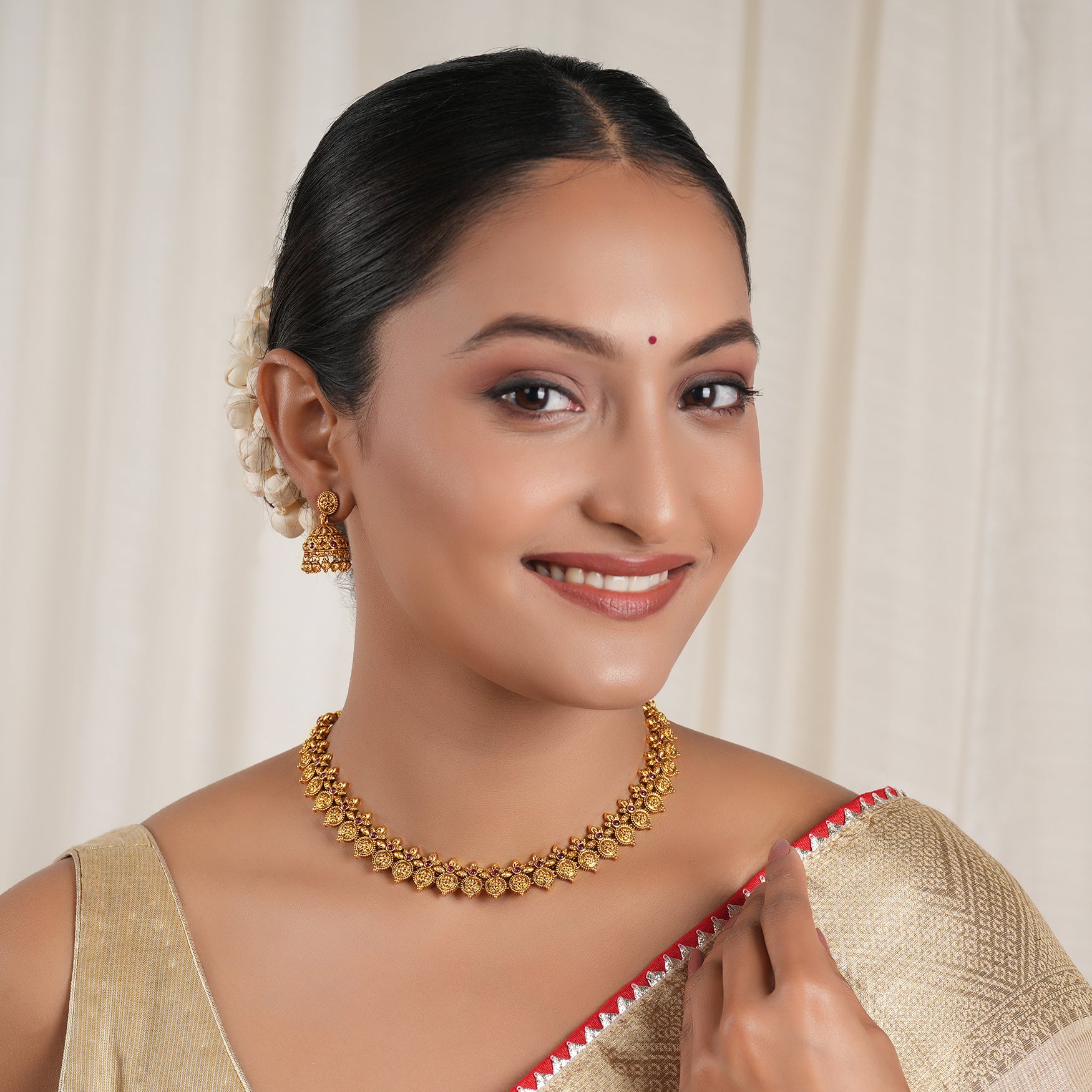 NOTE: This Beautiful antique gold ruby necklace set is has been crafted by hand and may have slight irregularities or imperfections in color or embellishment. These irregularities are the result of human involvement in the process and add to the finished product's charm while ensuring you have a one-of-a-kind piece.