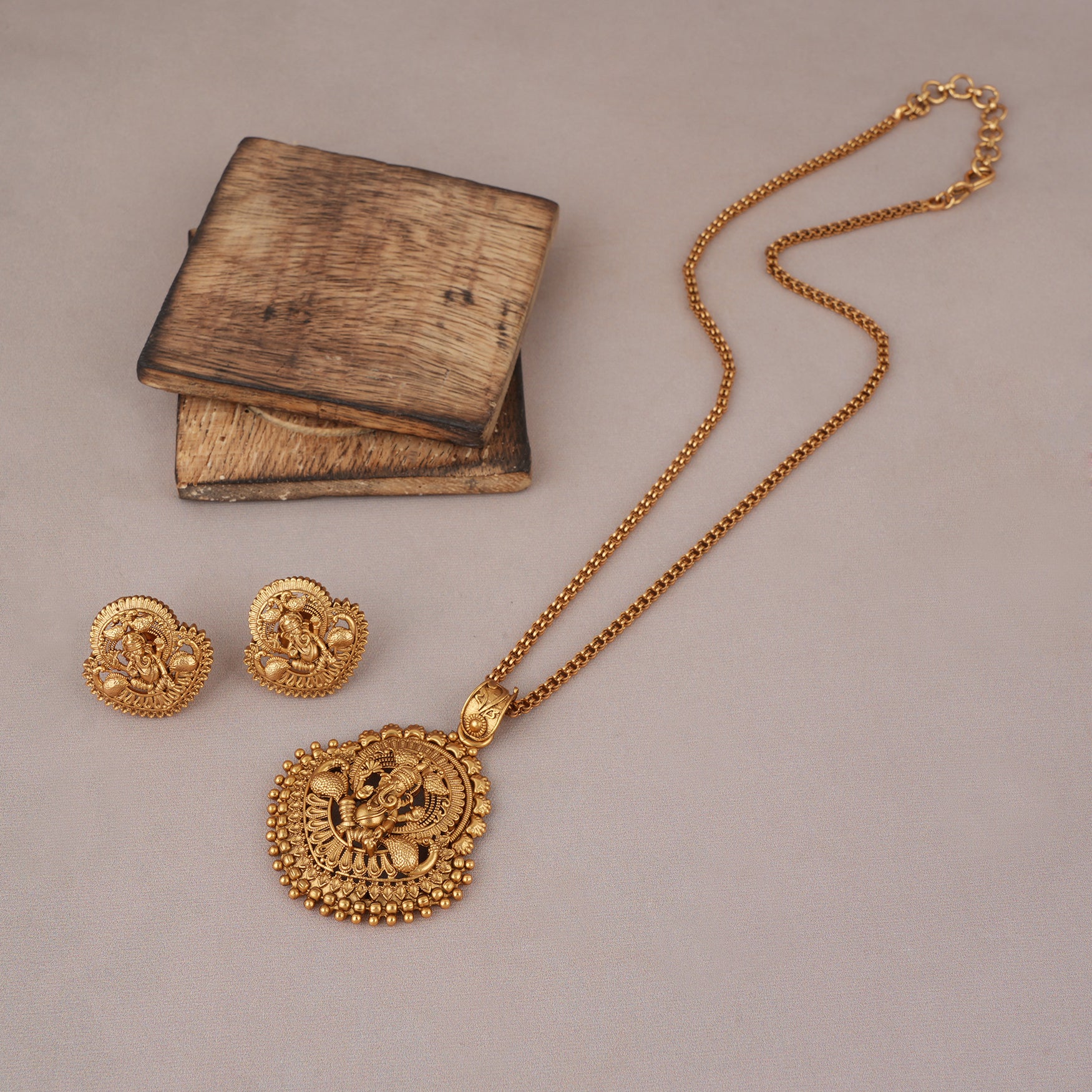 Beautiful antique gold ganesh pendant set with earring I Temple jewellery