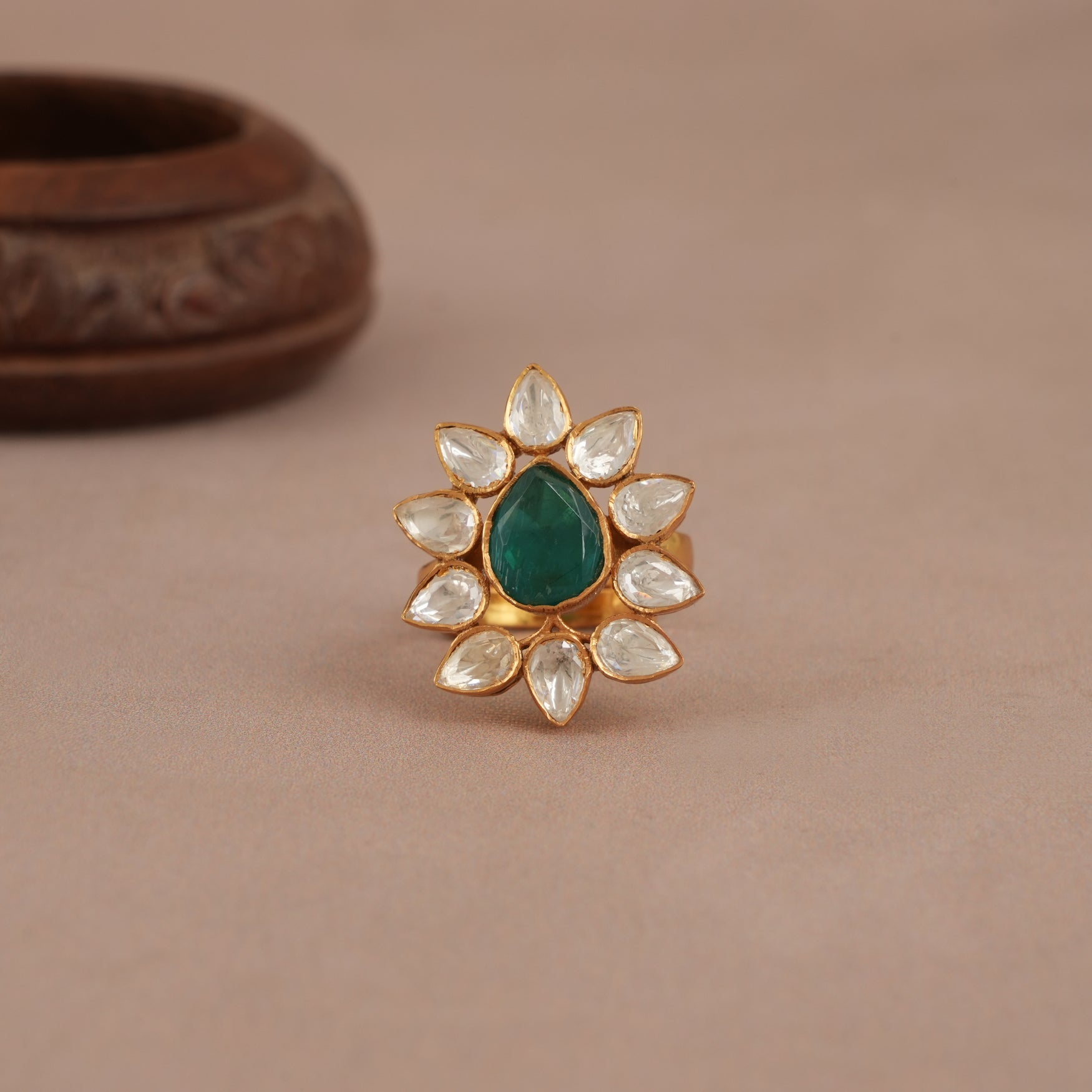 NOTE: This has been crafted by hand and Beautiful gold plated kundan finger ring have slight irregularities or imperfections in color or embellishment. These irregularities are the result of human involvement in the process and add to the finished product's charm while ensuring you have a one-of-a-kind piece.
