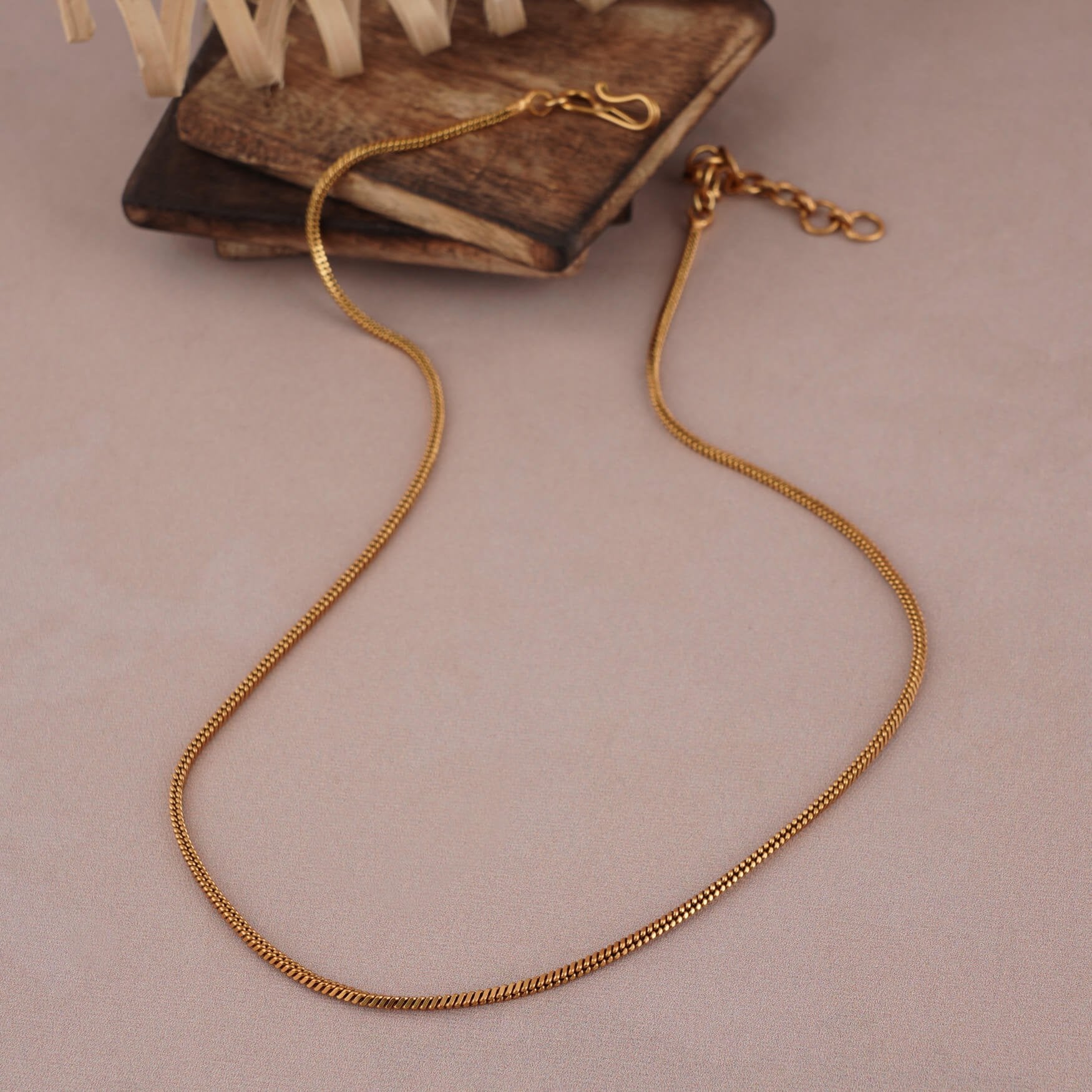 Elegant snake gold plated chain  is made of brass alloy with gold plating. This gold chain length is 18 inches, and its lock is hook lock.  You can adjust the length of the chain to your desired length as it has a hook lock.  Buy  Elegant snake gold plated chain   in gold and get free shipping even on Cash on Delivery.