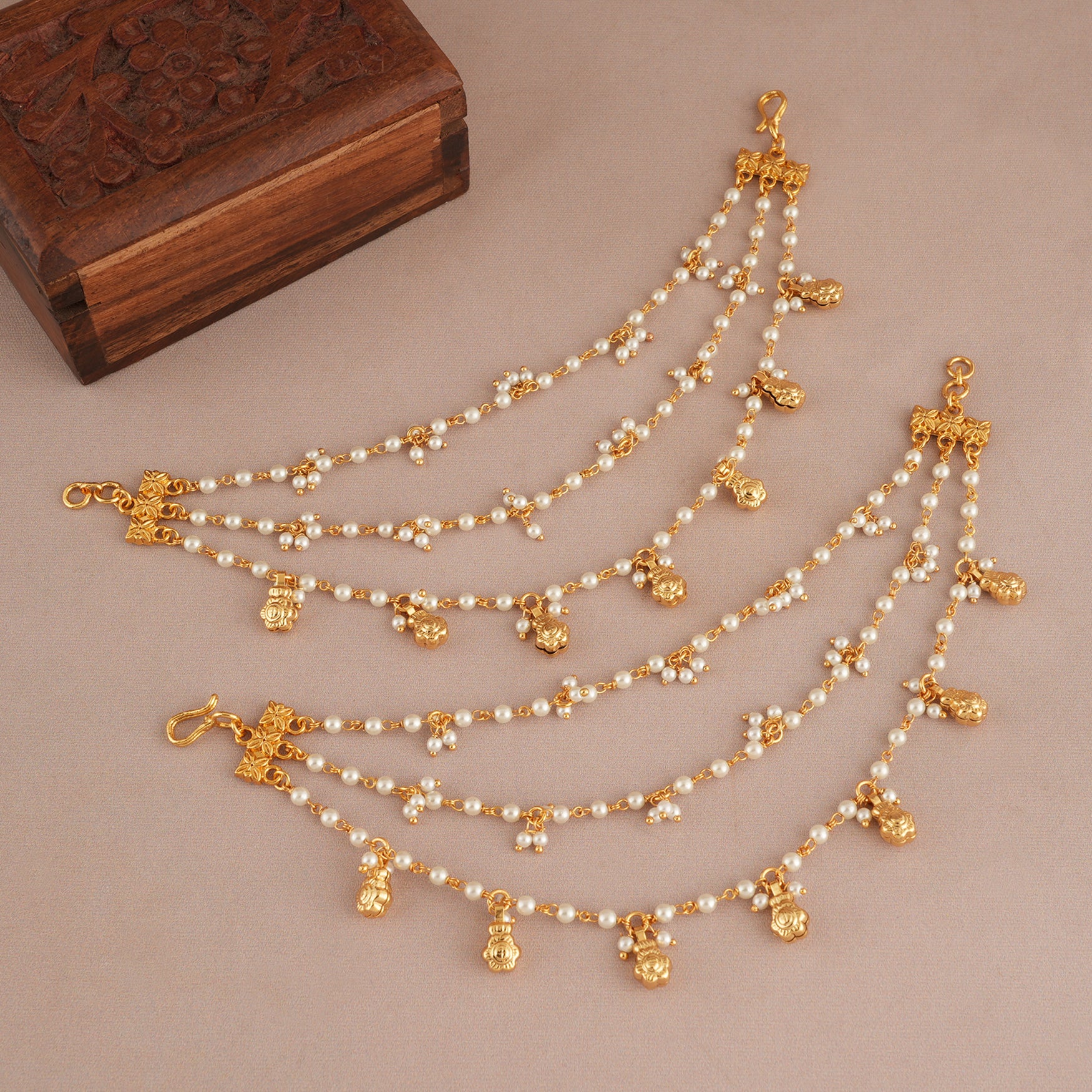 Buy Beautiful pearl gold plated ear chain and get free shipping even on Cash on Delivery.