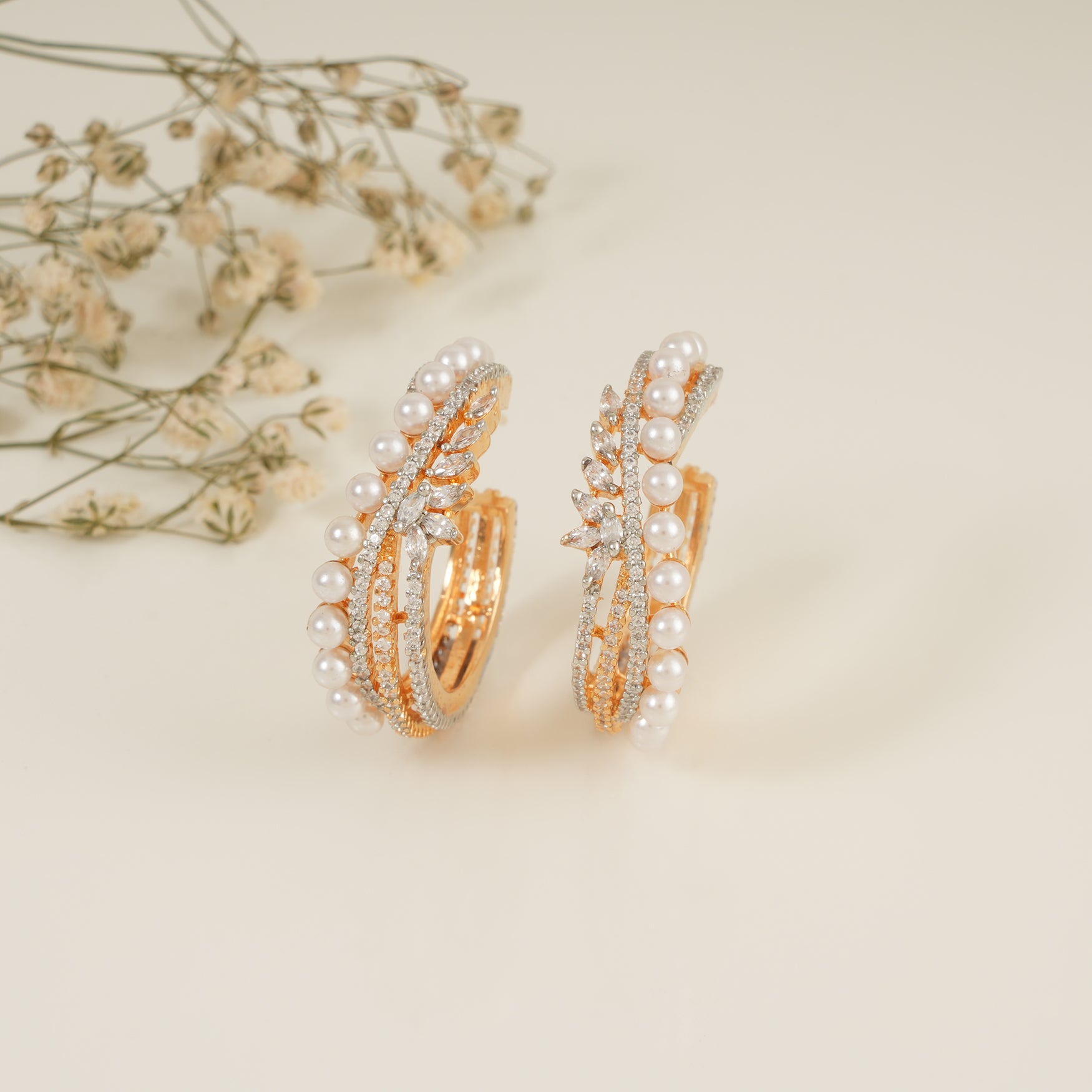 Beautiful pearl studded diamond gold hoop earring for women are show-stopping and come in contemporary Indian design with gold plating and handwork.