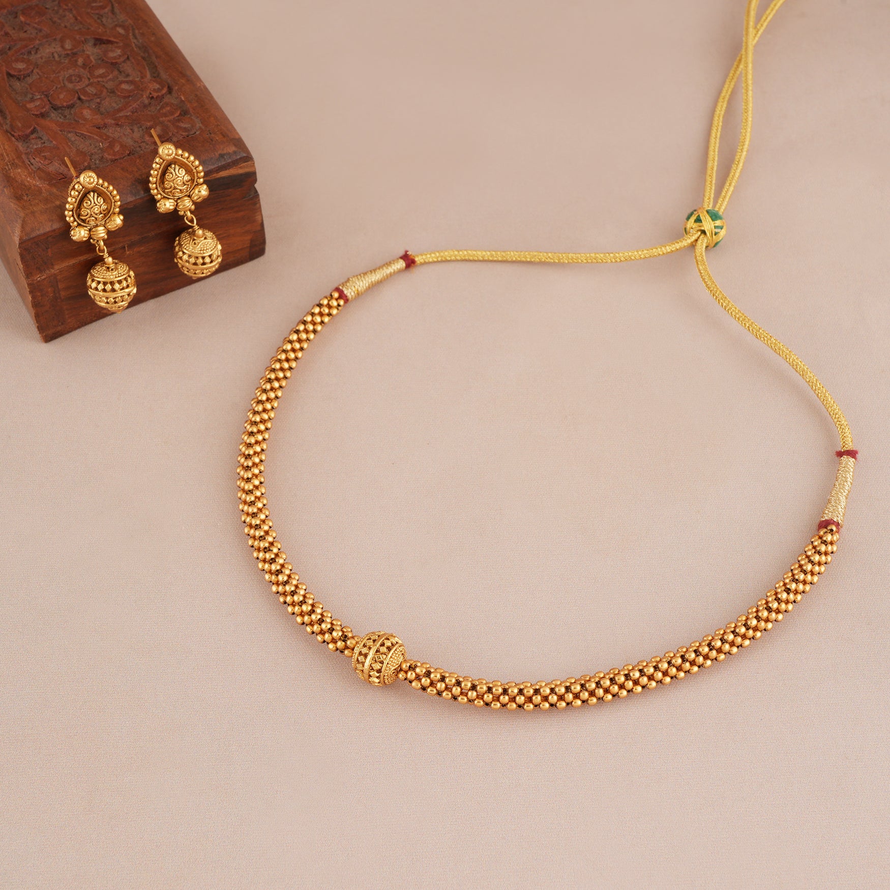 NOTE: These Beautiful plain antique gold necklace choker set have been crafted by hand and may have slight irregularities or imperfections in color or embellishment. These irregularities are the result of human involvement in the process and add to the finished product's charm while ensuring you have a one-of-a-kind piece.