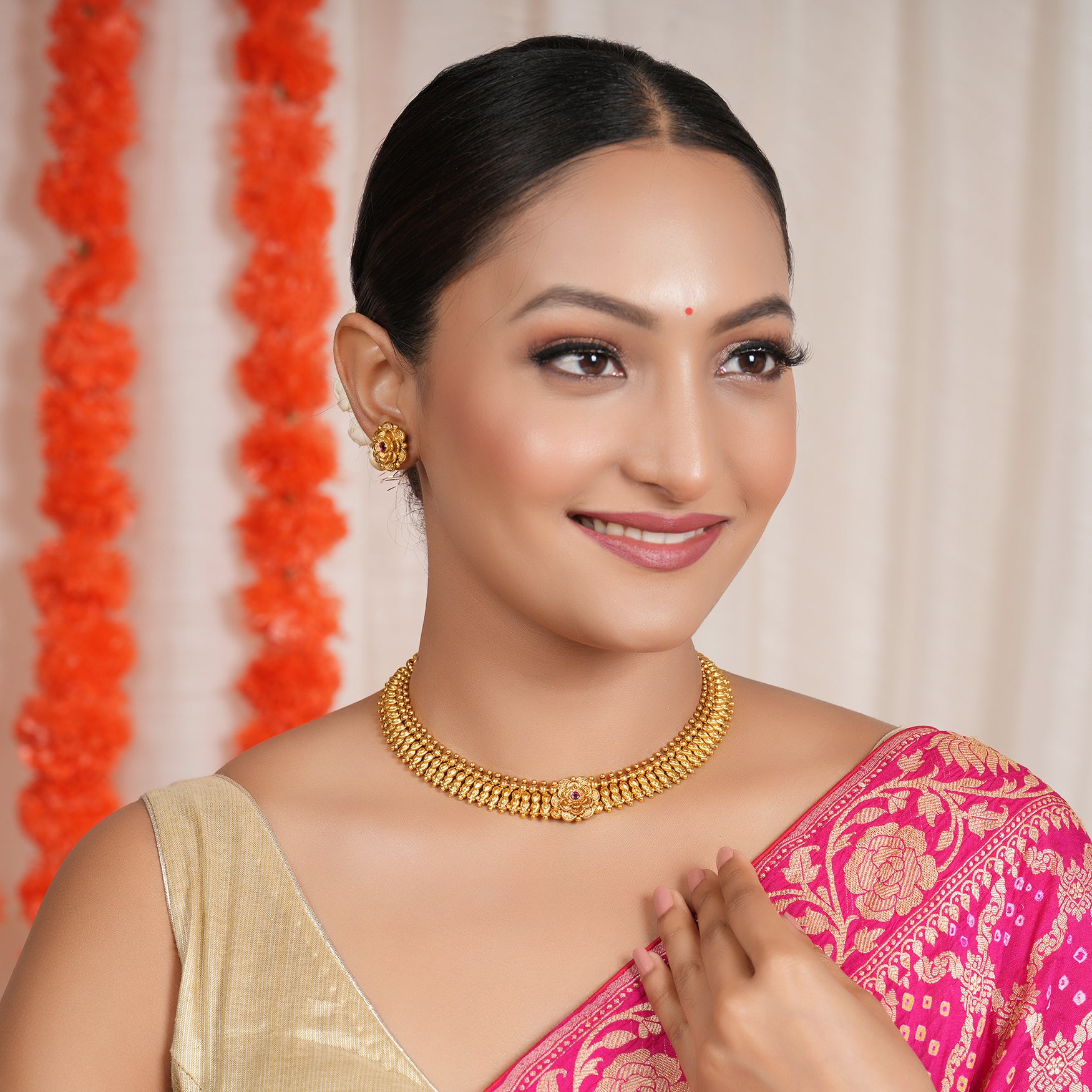 NOTE: These Beautiful plain floral antique gold plated necklace set  have been crafted by hand and may have slight irregularities or imperfections in color or embellishment. These irregularities are the result of human involvement in the process and add to the finished product's charm while ensuring you have a one-of-a-kind piece.