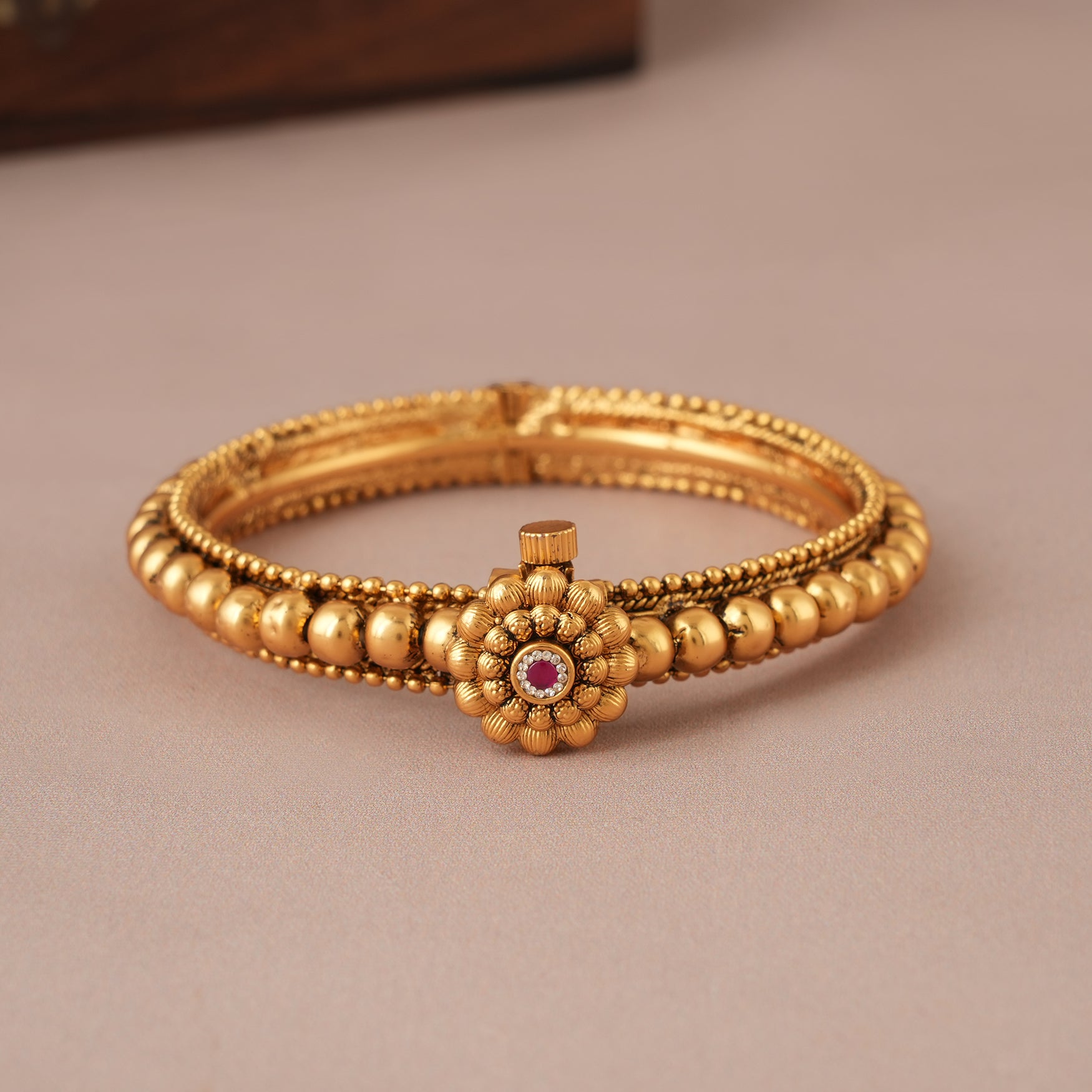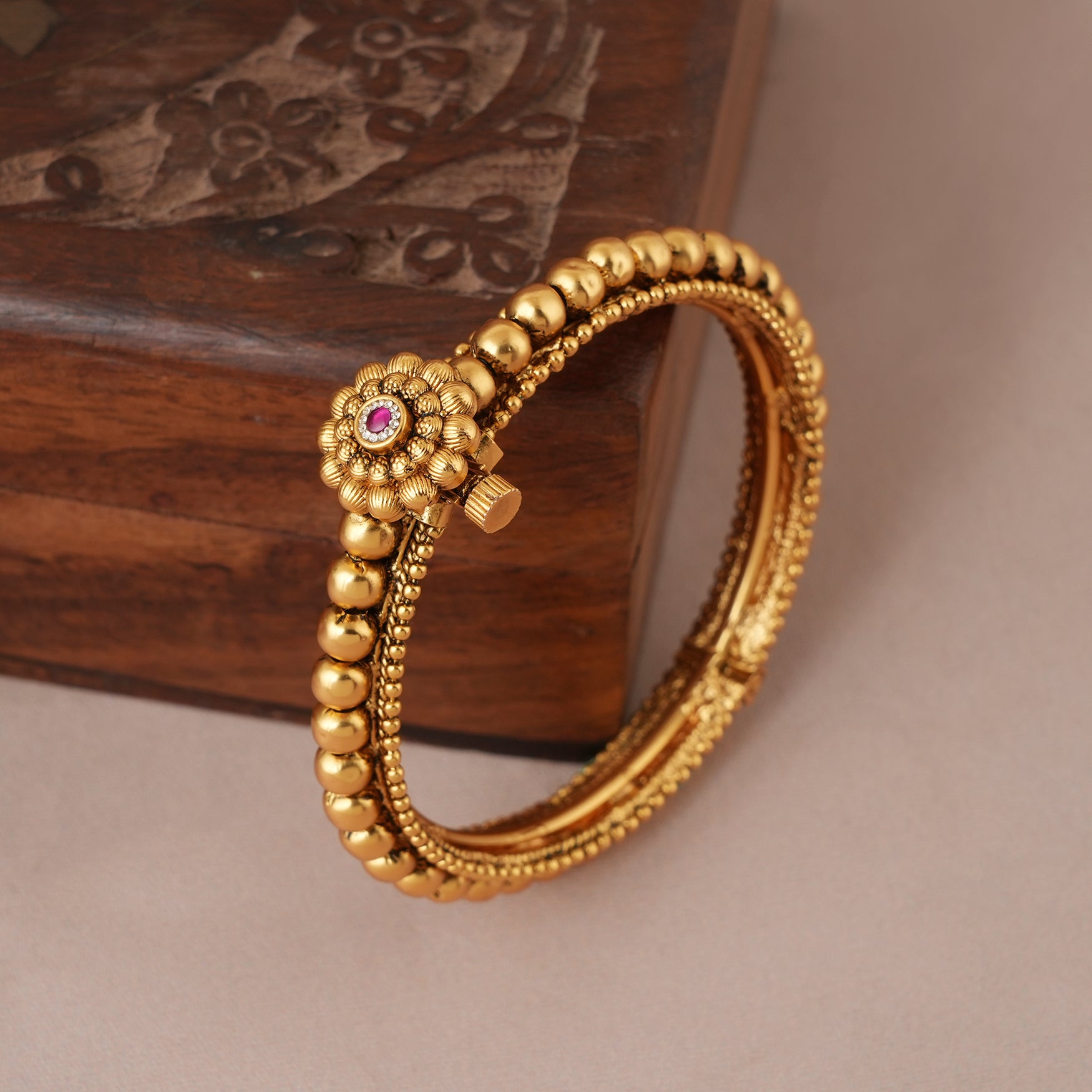 Beautiful traditional antique gold kada bangle for women is a timeless piece that will provide you with years of beautiful wear. This Beautiful traditional antique gold kada bangle is show-stopping and comes in traditional Indian design with gold plating and handwork. Buy Beautiful traditional antique gold kada bangle online and get free shipping even on Cash on Delivery