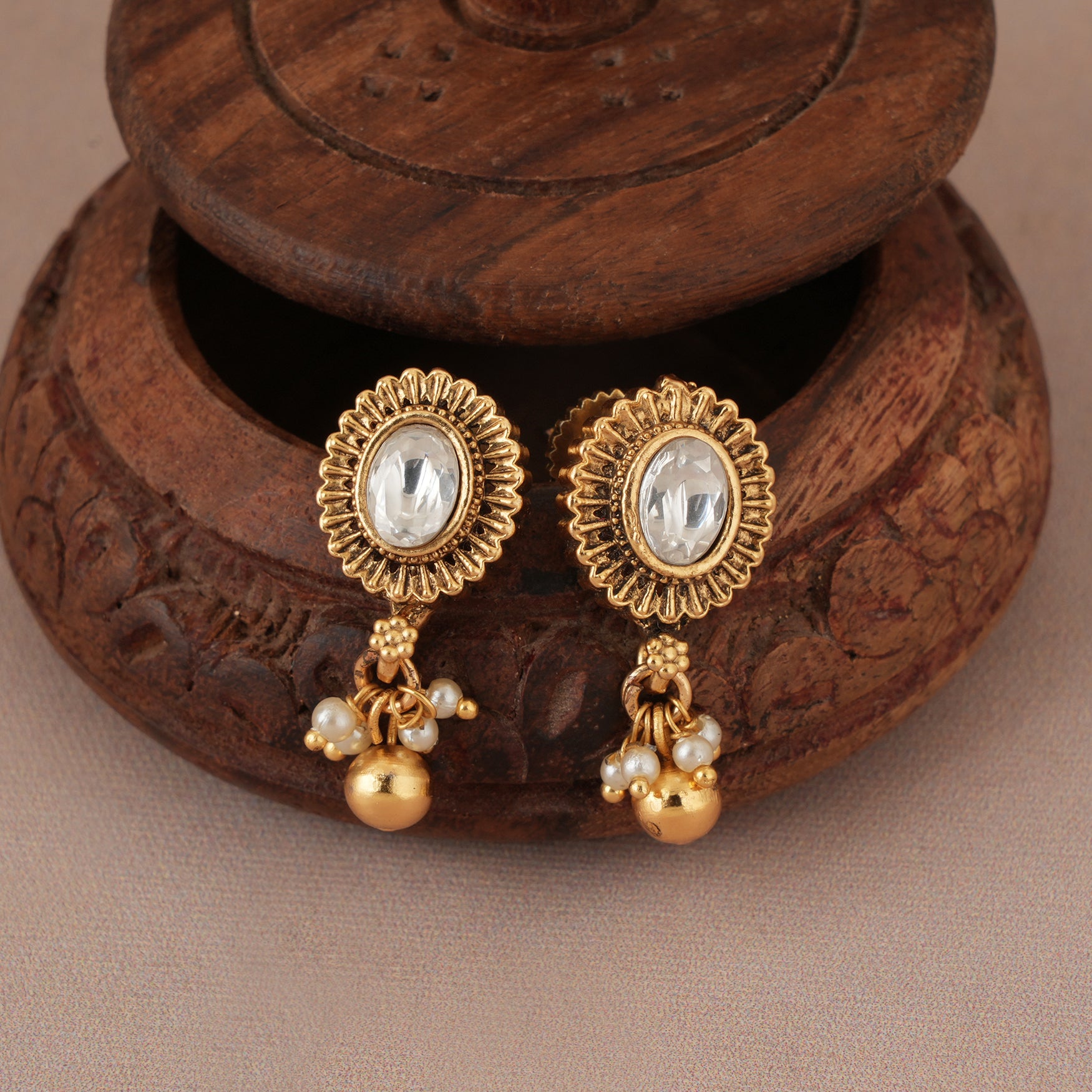 NOTE: These  Cute antique gold kundan ball drop earring  been crafted by hand and may have slight irregularities or imperfections in colour or embellishment. These irregularities are the result of human involvement in the process and add to the finished product's charm while ensuring you have a one-of-a-kind piece.