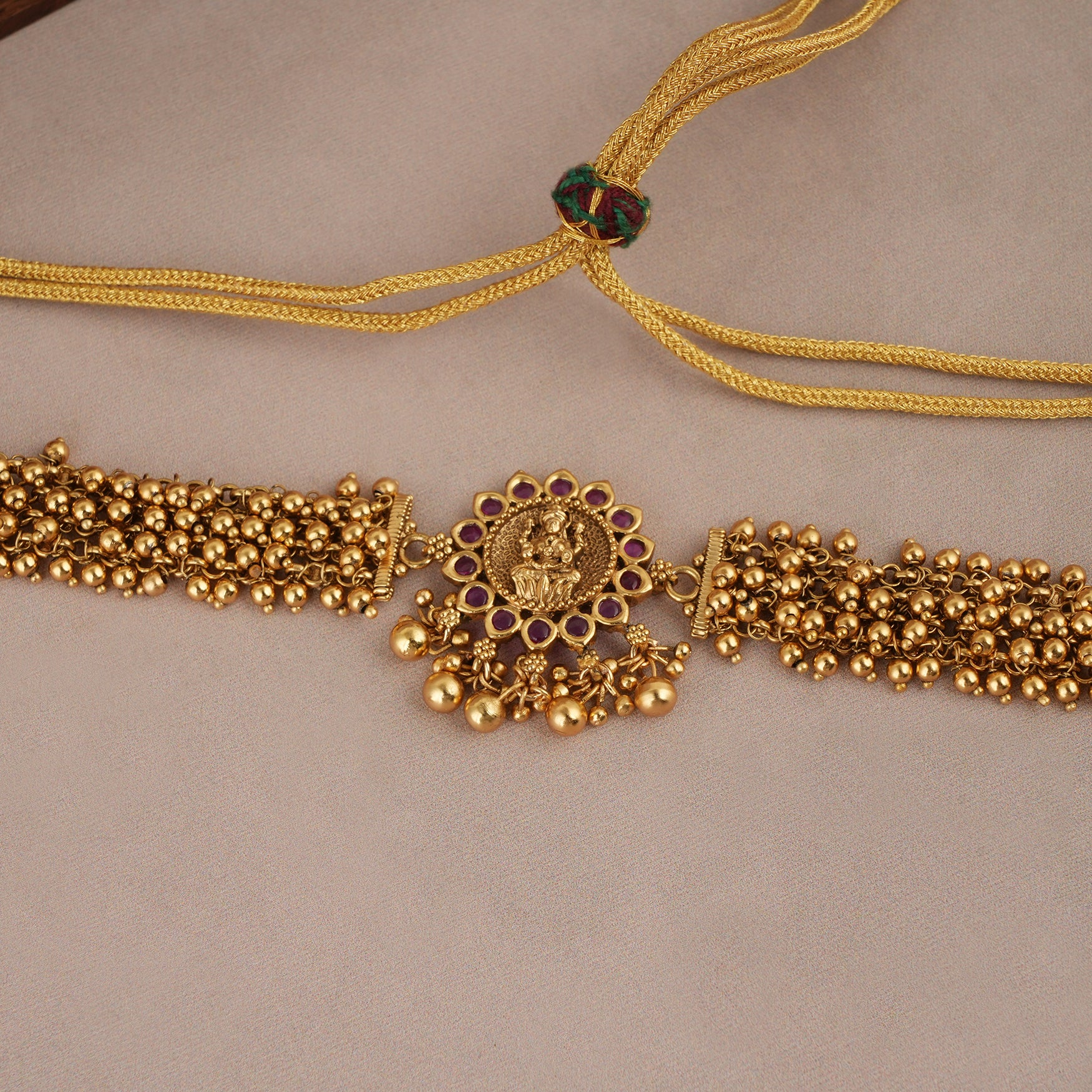Cute antique gold maa lakshmi ruby choker set | Temple jewellery
