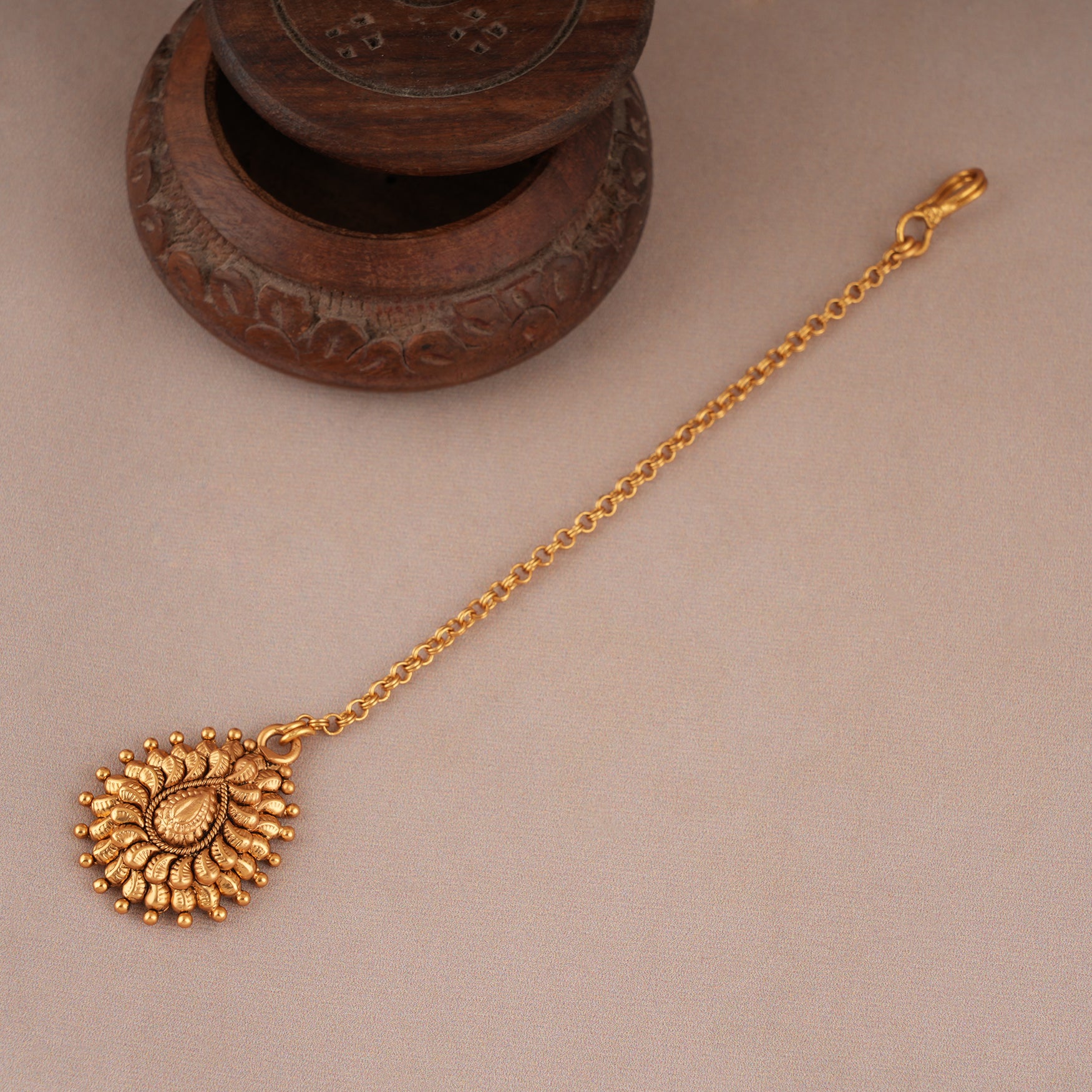 Cute antique gold pear shaped maangtika set