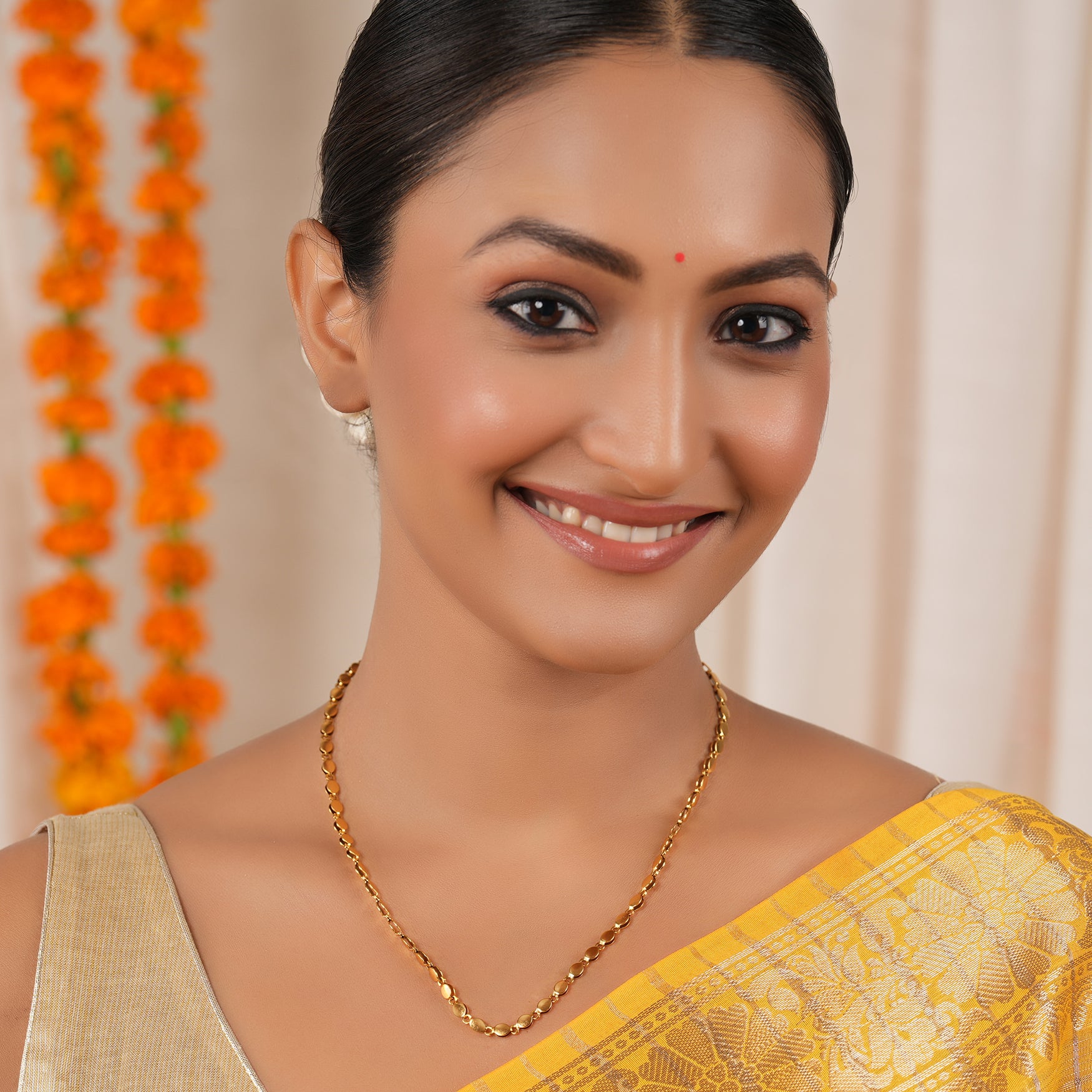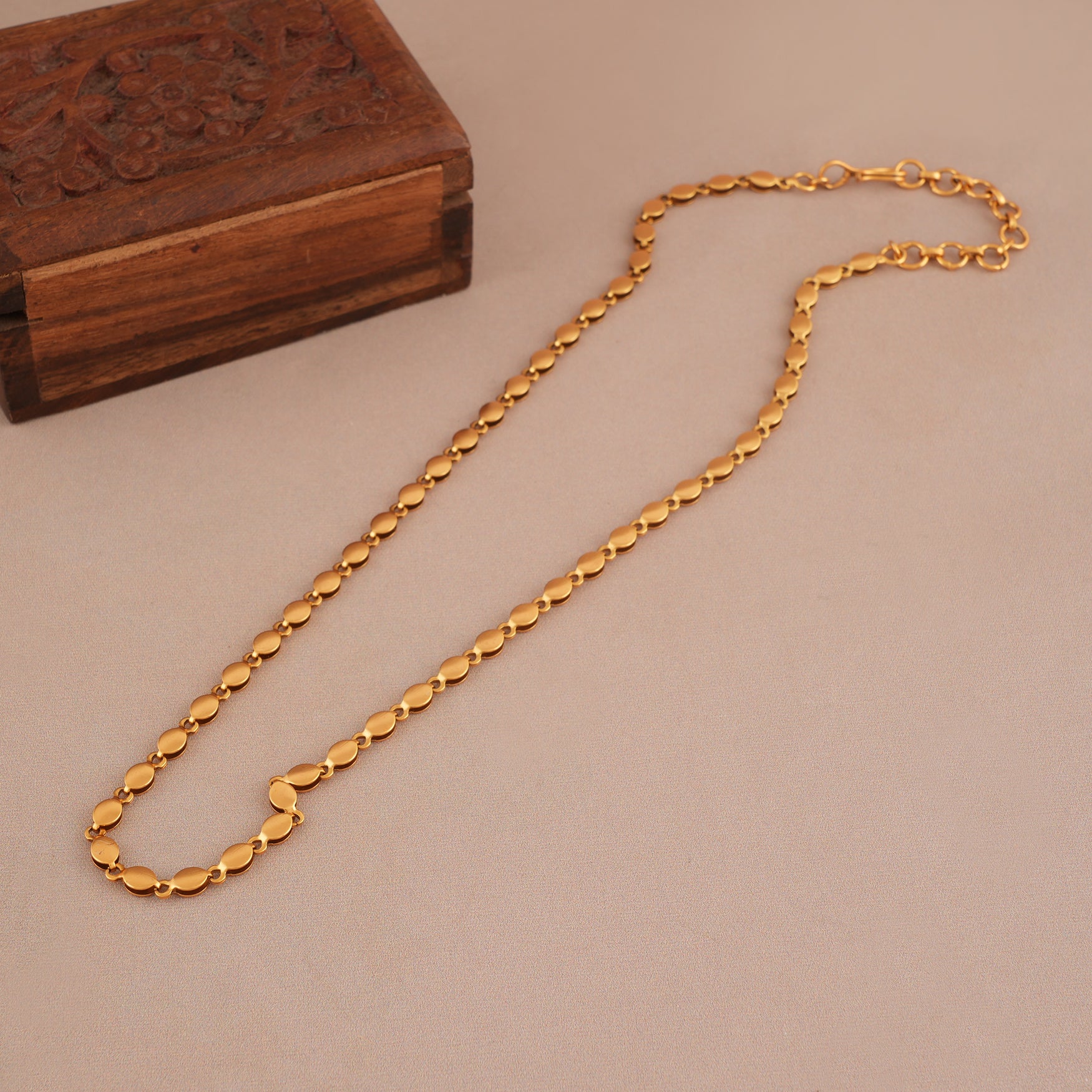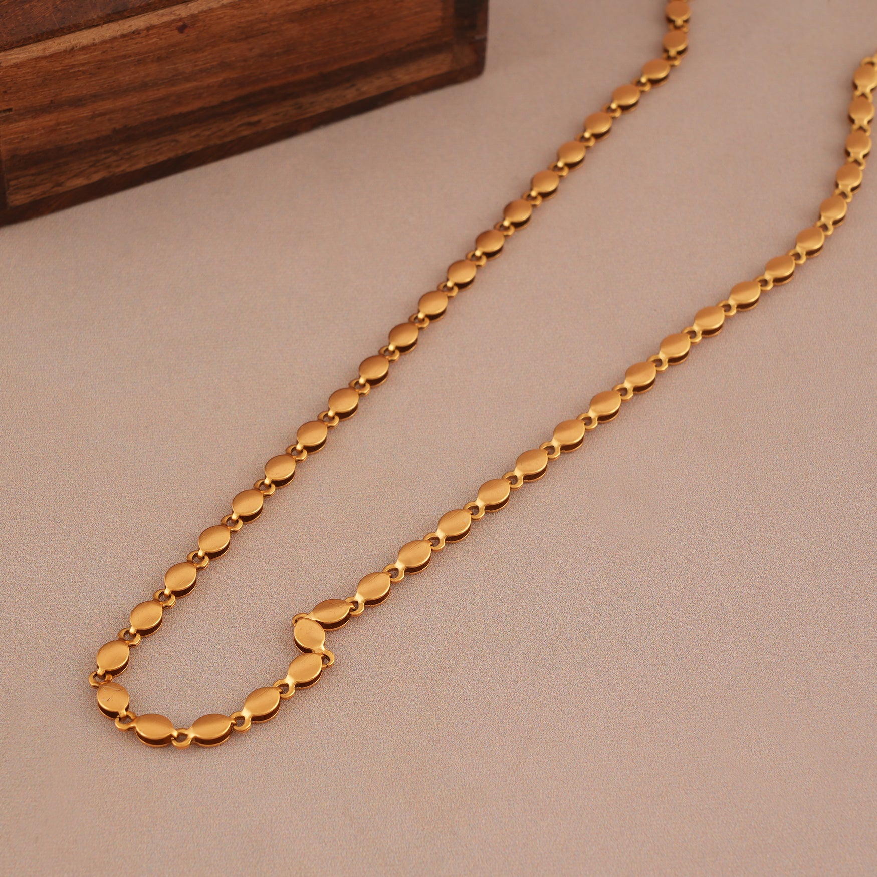 Cute antique gold plain oval chain is made of brass alloy with gold plating. This gold chain length is 22 inches, and its lock is hook lock.  You can adjust the length of the chain to your desired length as it has a hook lock.  Buy Cute antique gold plain oval chain and get free shipping even on Cash on Delivery.