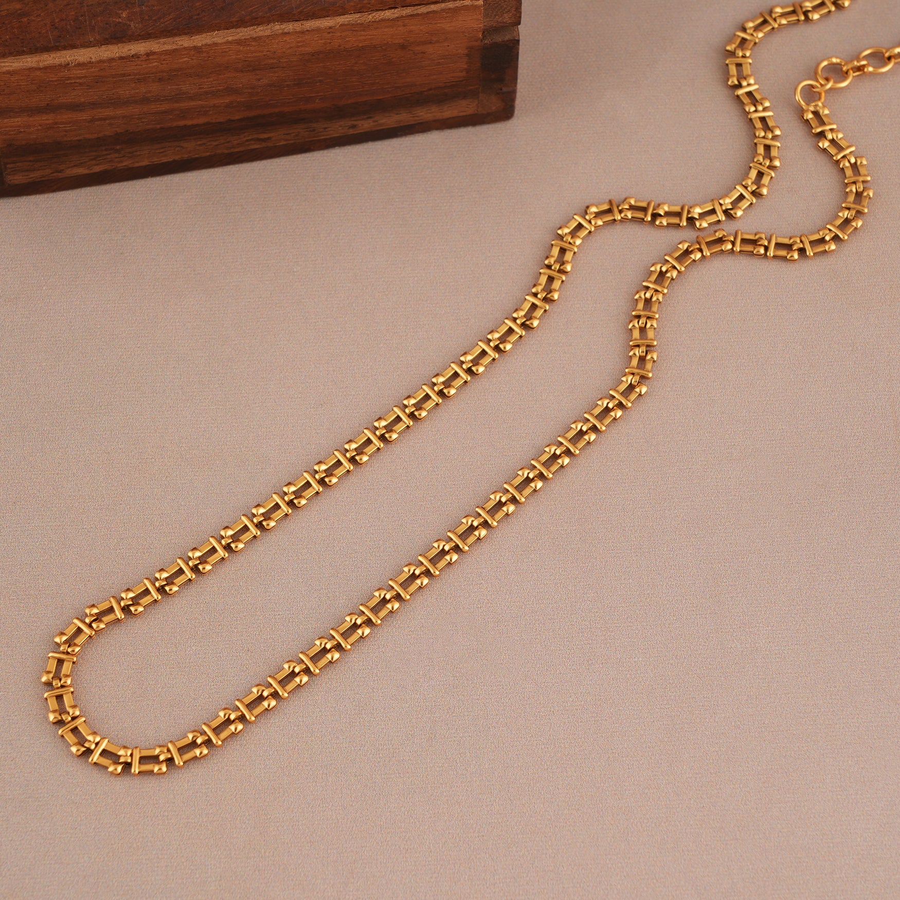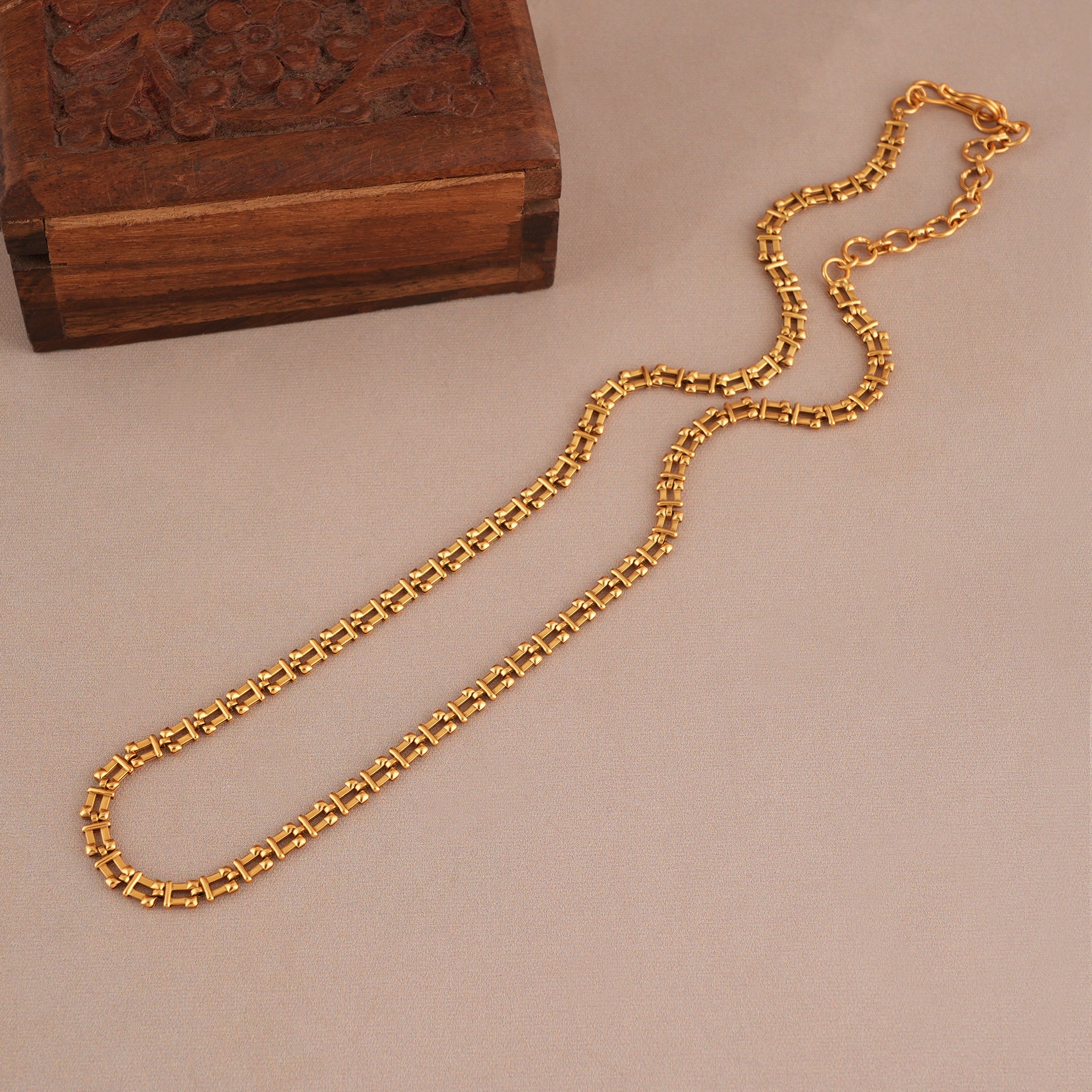 Cute antique gold plated curb chain is made of brass alloy with gold plating. This gold chain length is 22 inches, and its lock is hook lock.  You can adjust the length of the chain to your desired length as it has a hook lock.  Buy Cute antique gold plated curb chain and get free shipping even on Cash on Delivery.