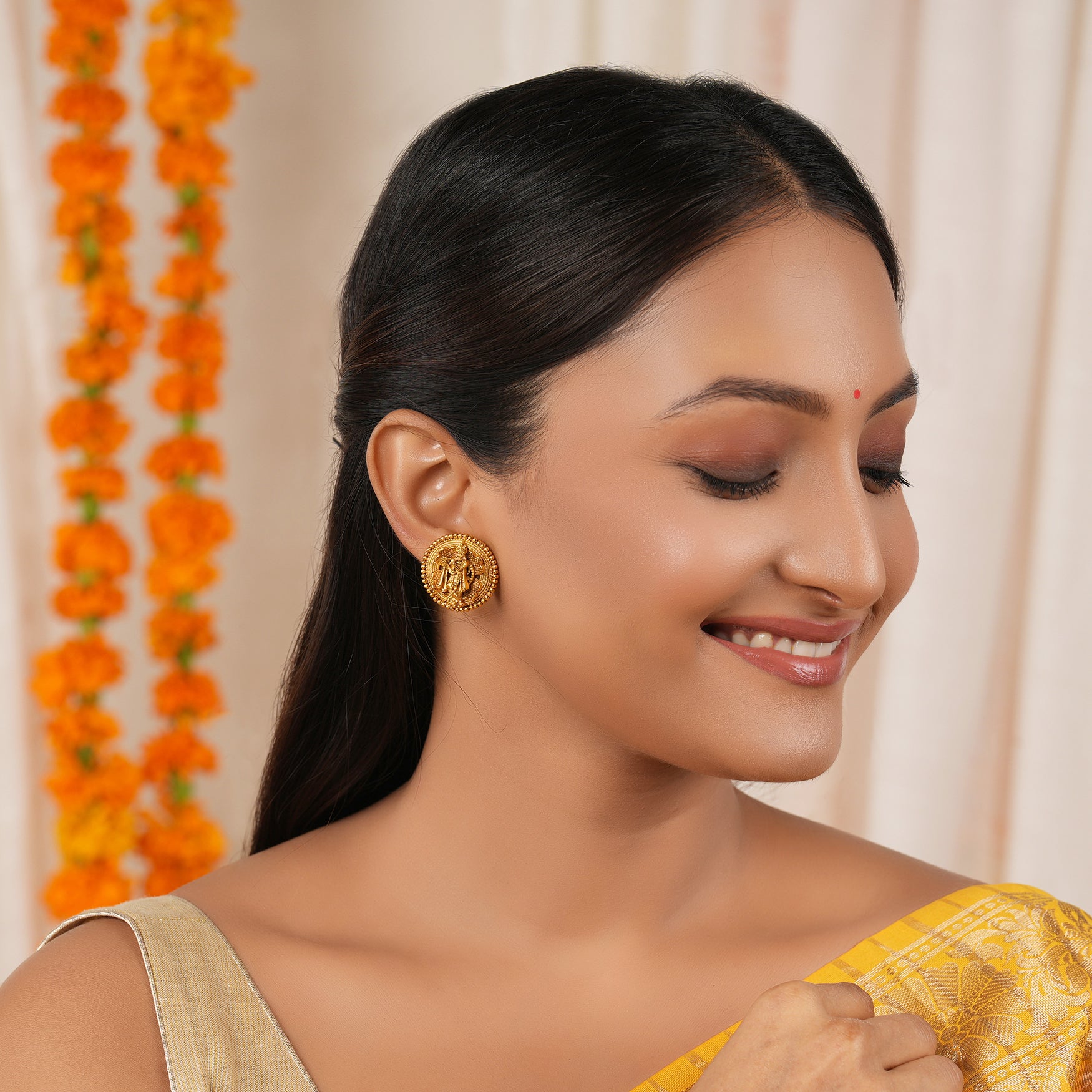 Cute antique gold radha krishna stud earring for women are show-stopping and come in traditional Indian design with gold plating and handwork.