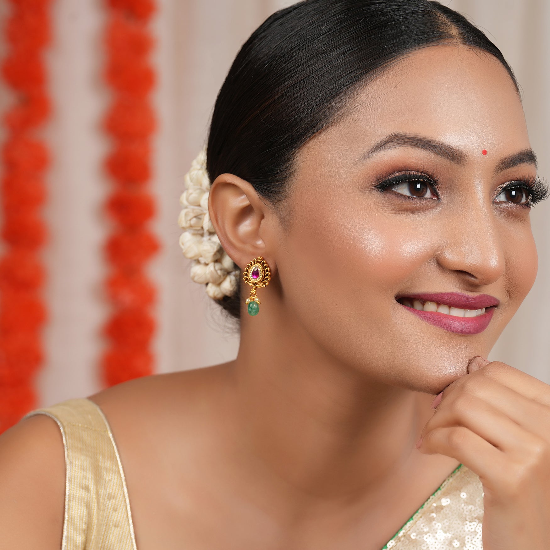NOTE: These Cute antique gold small stone drop earring   been crafted by hand and may have slight irregularities or imperfections in colour or embellishment. These irregularities are the result of human involvement in the process and add to the finished product's charm while ensuring you have a one-of-a-kind piece.