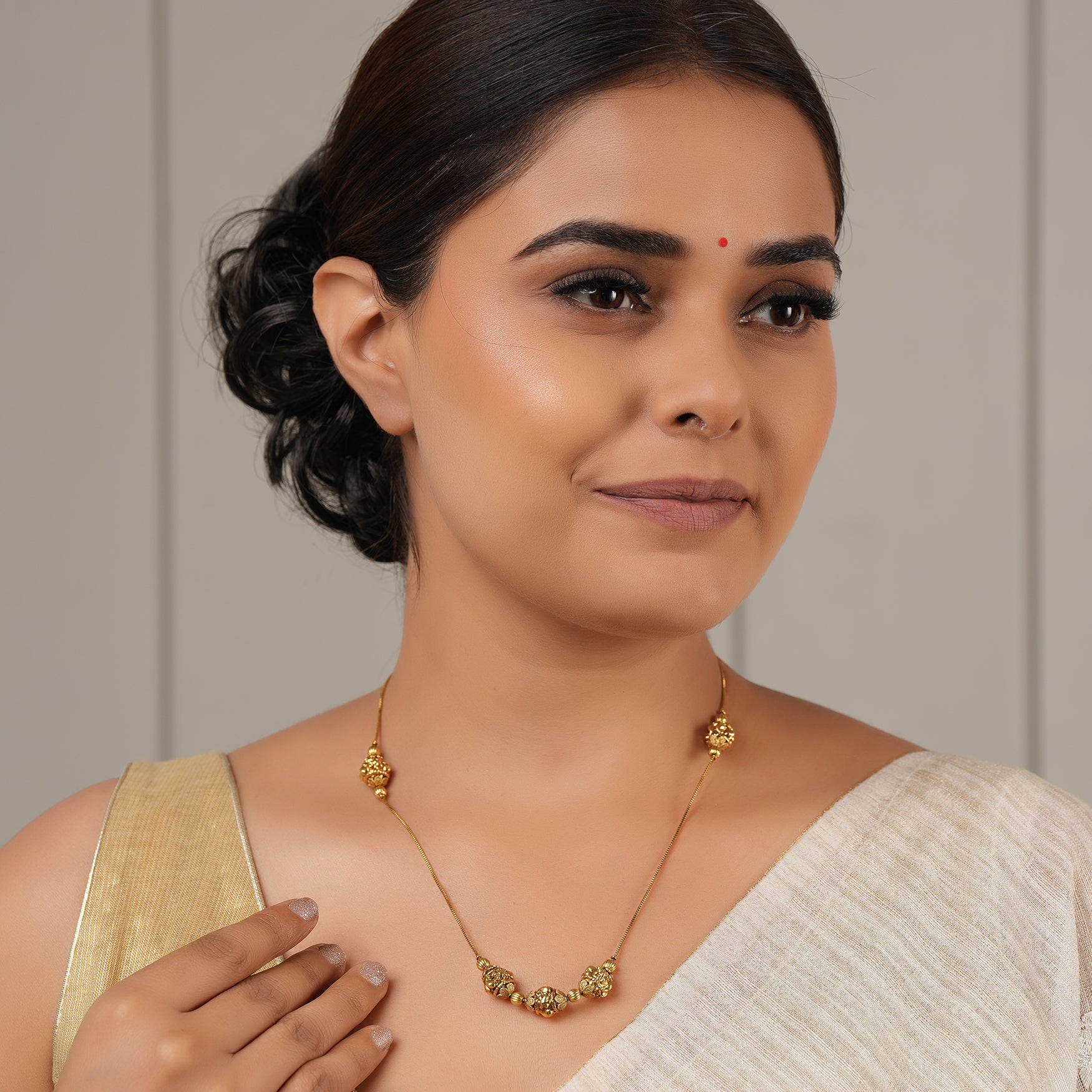 The necklace length is 18 inches, and the necklace lock is a S lock. Cute delicate antique gold ball chain is a show-stopping, traditional Indian necklace set with gold plating and handwork.